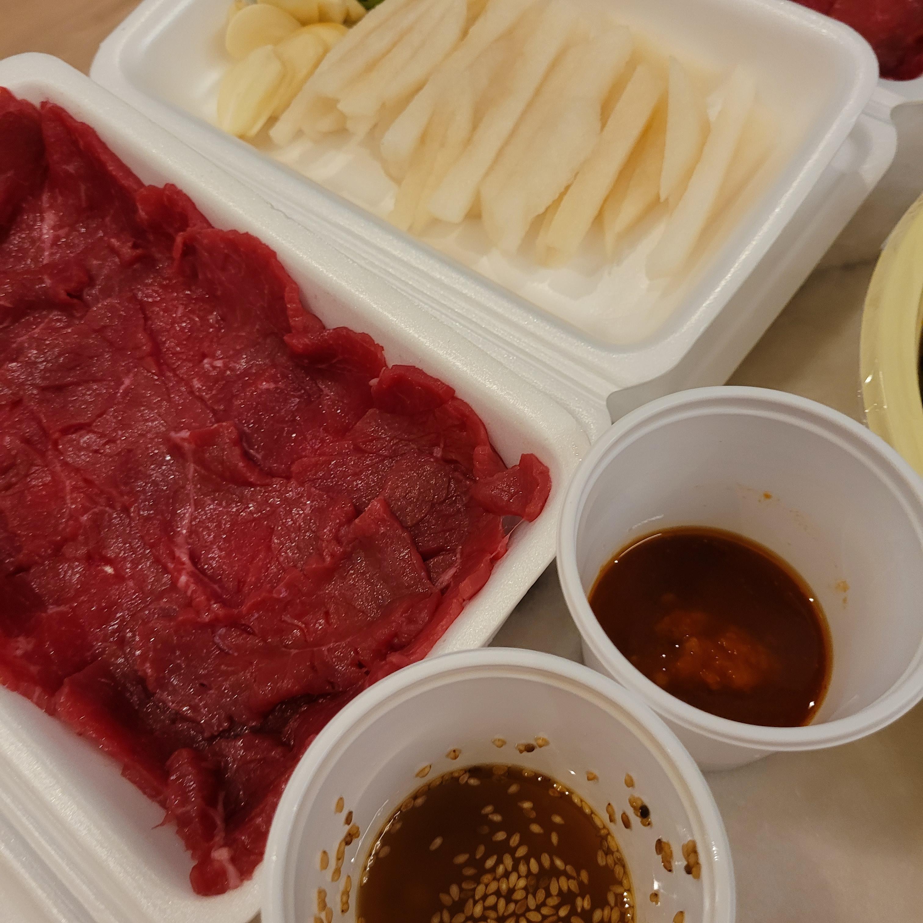 고기는 마블링 없는 깔끔한 고기!! 그 자체 맛이고 잡내는 전혀 안 났어요.