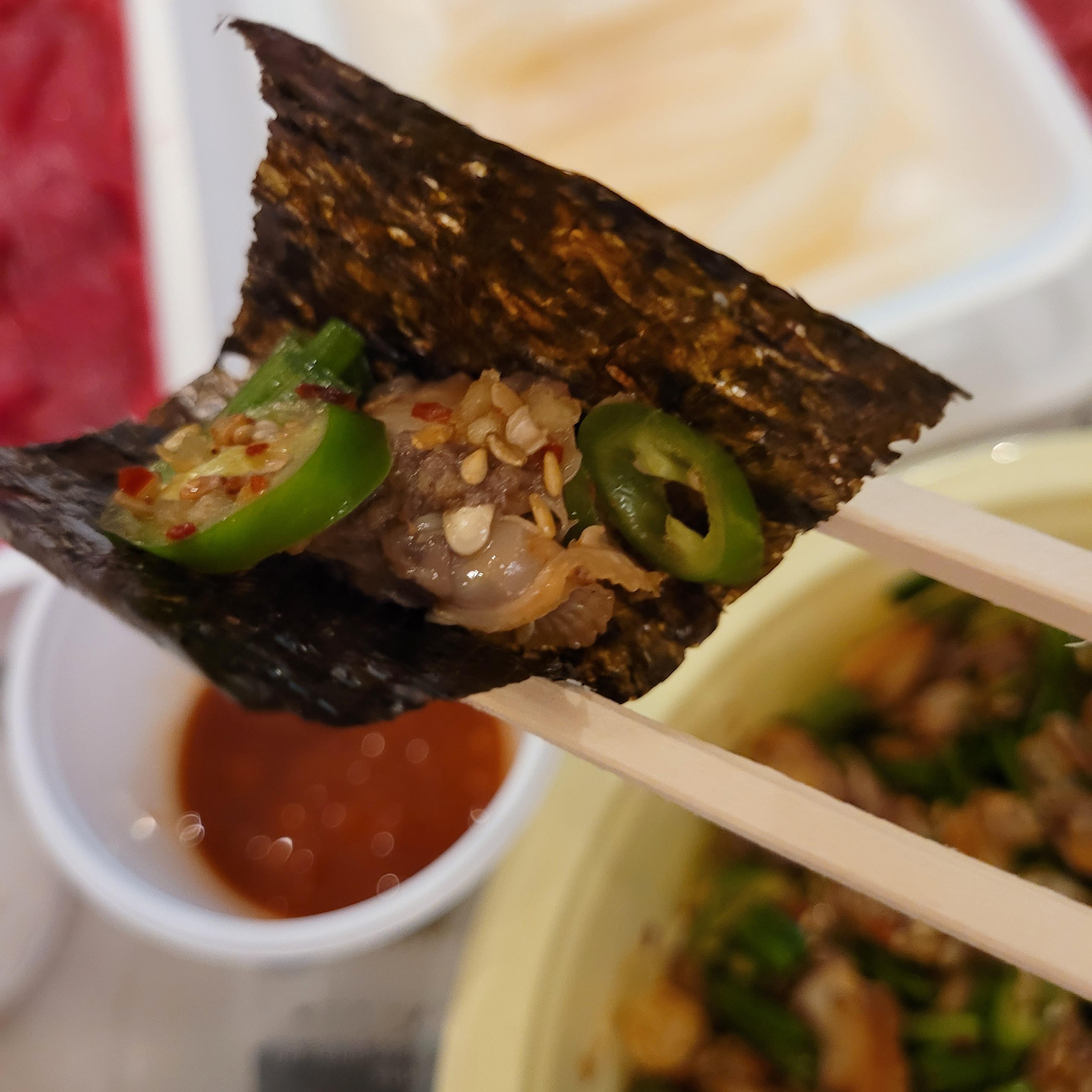 김에다 꼬막이랑 청양고추 넣고 한입!!~