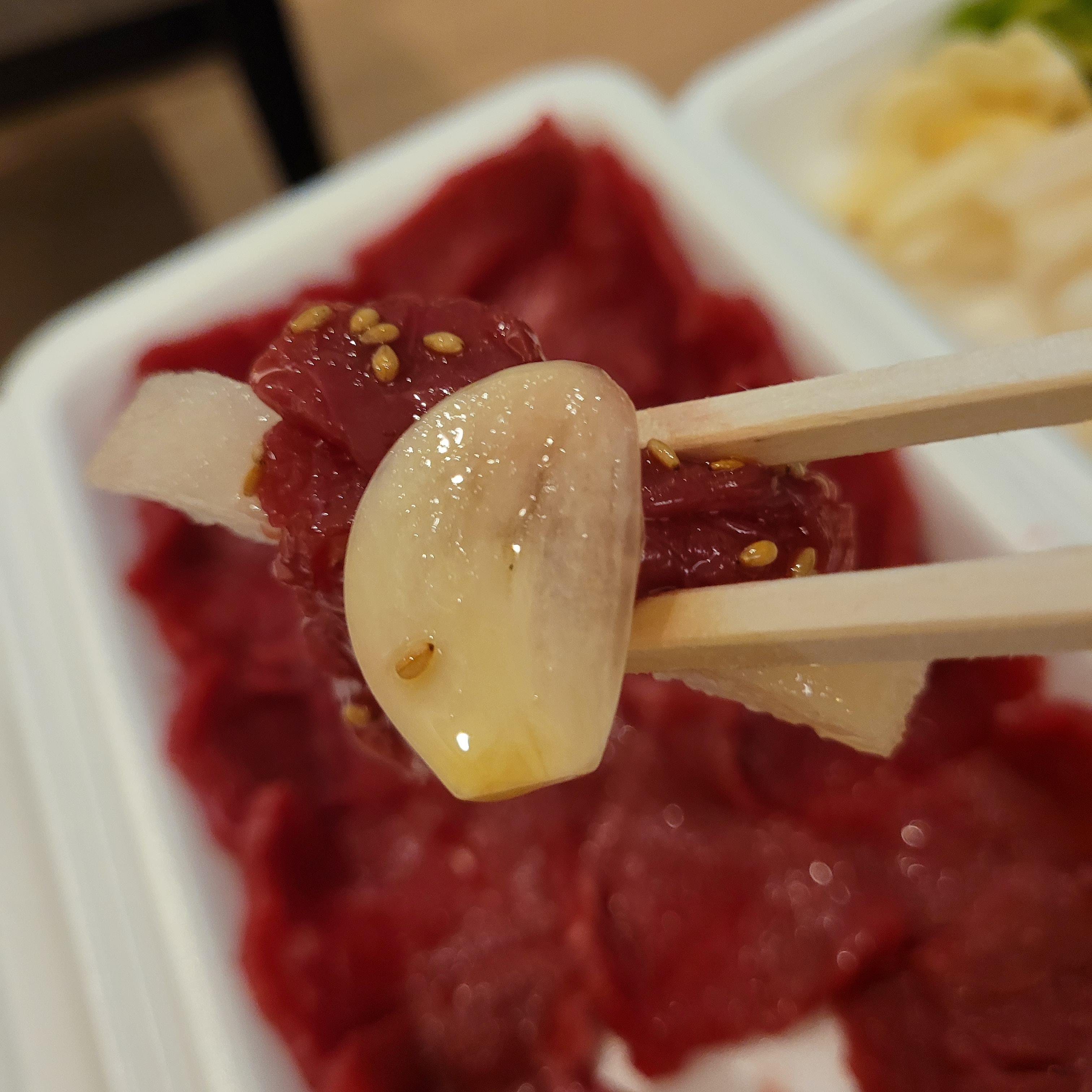 저는 마블링이 있는 부드러운 육사시미를 좋아하는 편이라 약간 아쉬웠어요.