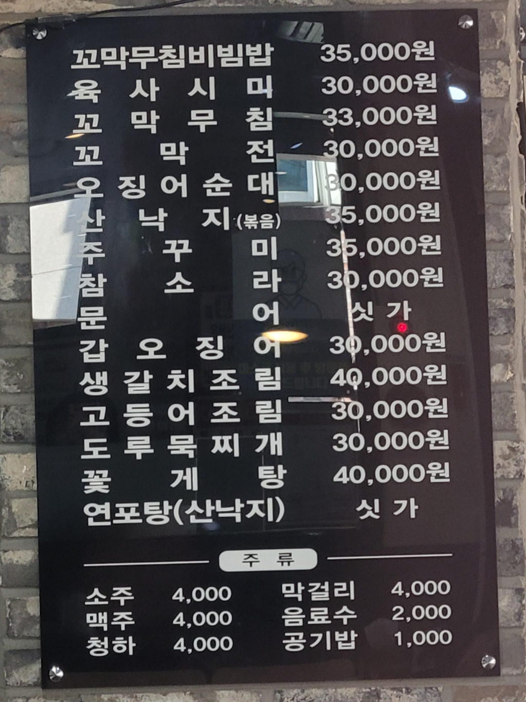 저번에 방문했을 때 꼬막무침비빔밥 먹어봐서 이번에 꼬막무침이랑 육사시미를 주문했어요.