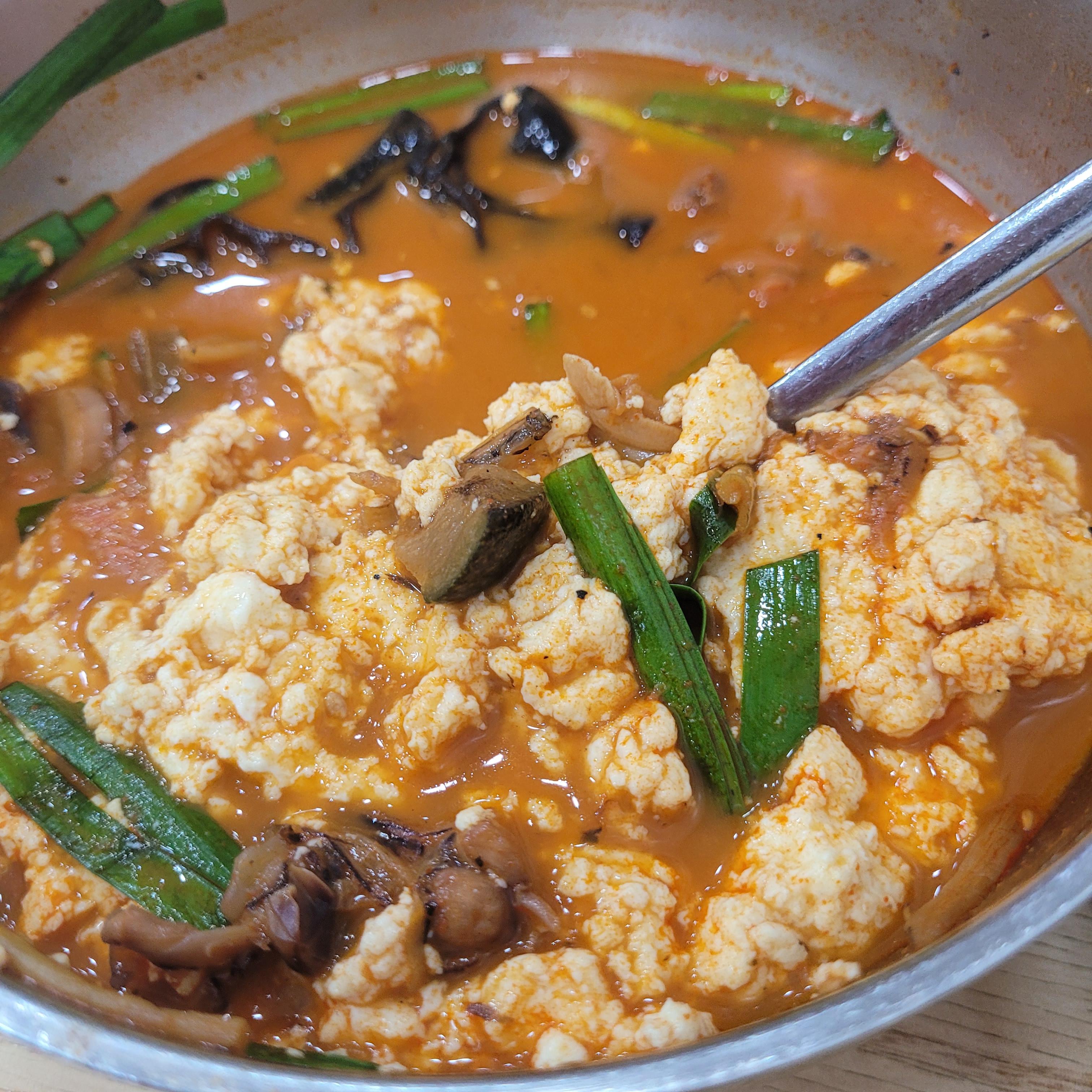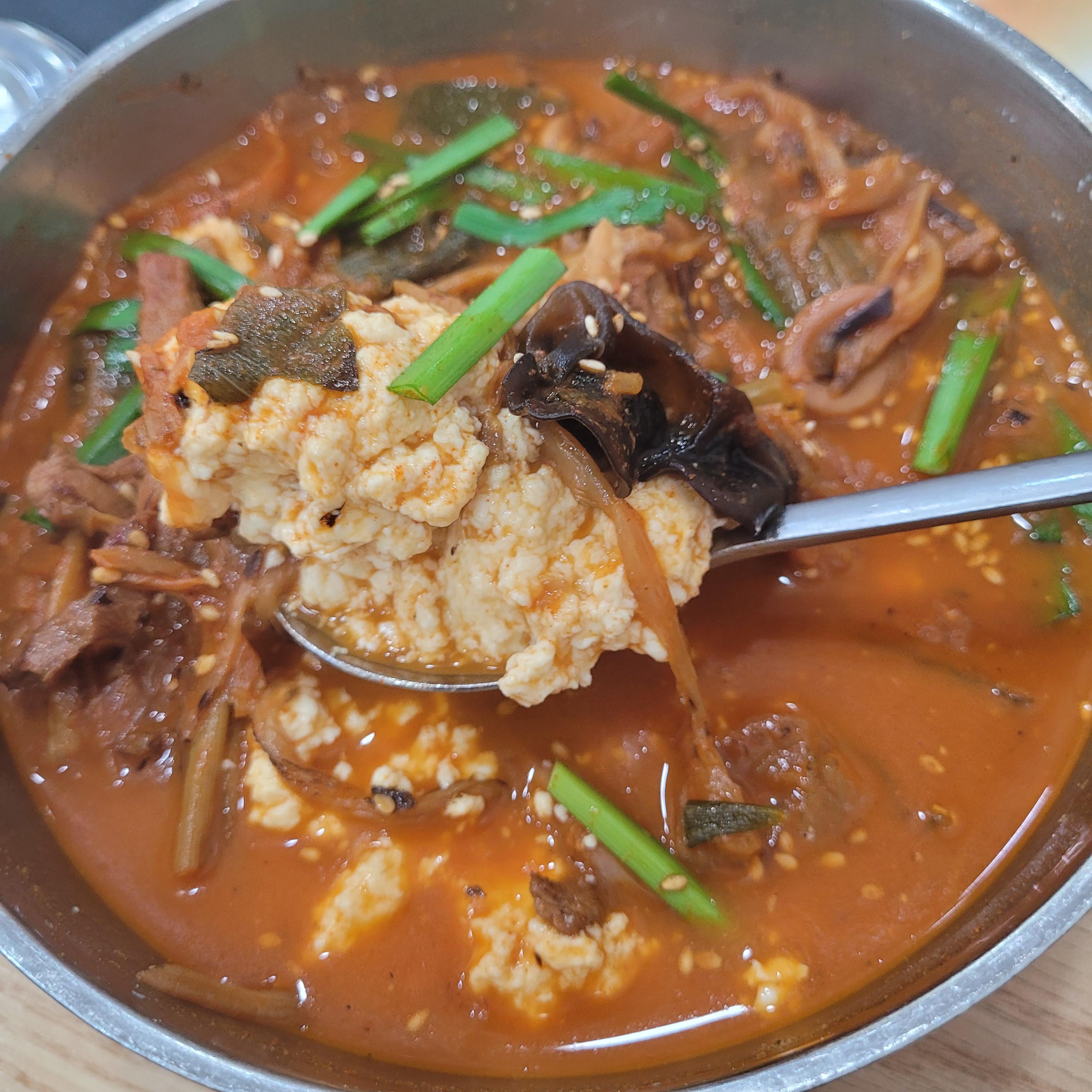 국물은 걸쭉한 편이고 간이 좀 센데 순두부랑 같이 먹으면 딱 좋아요.