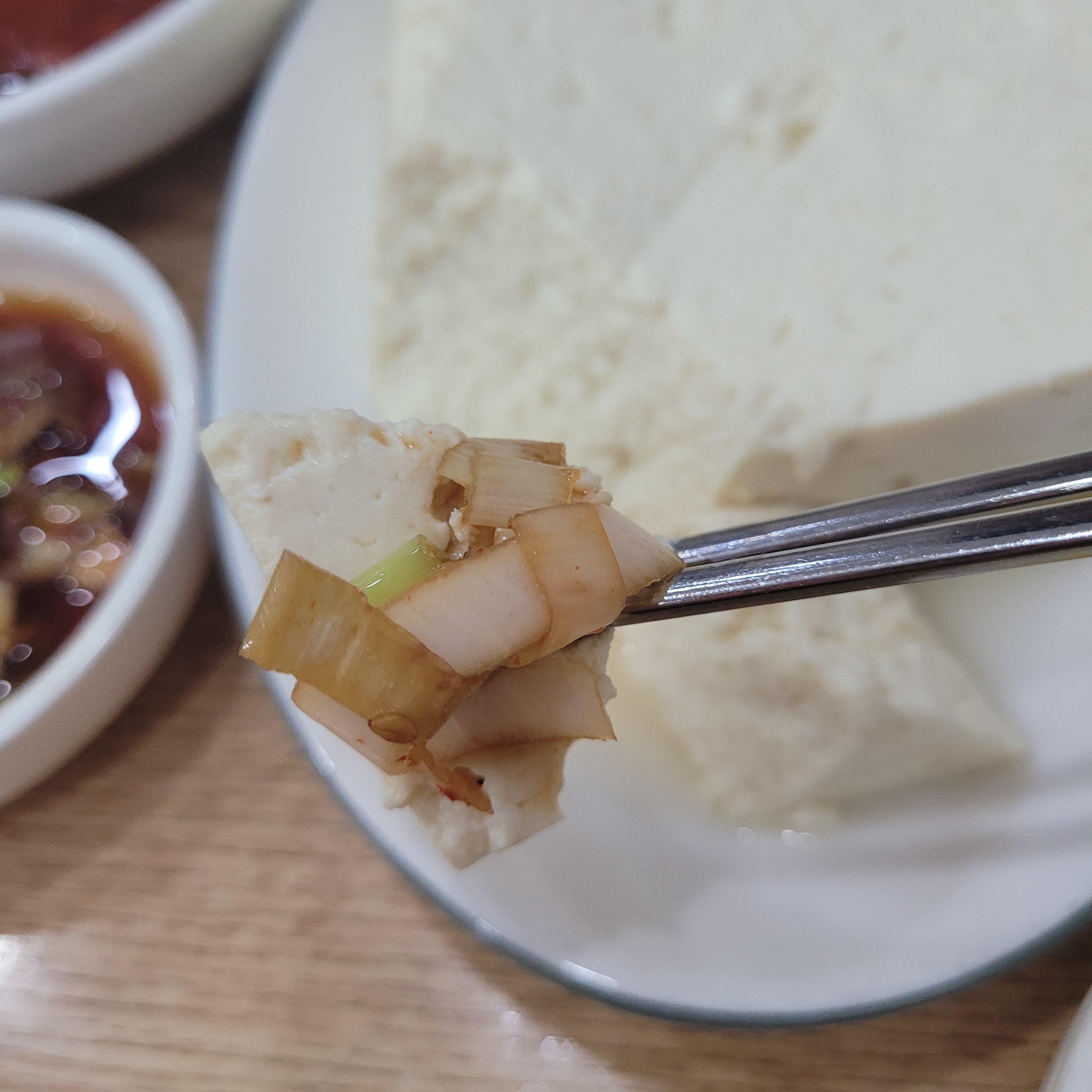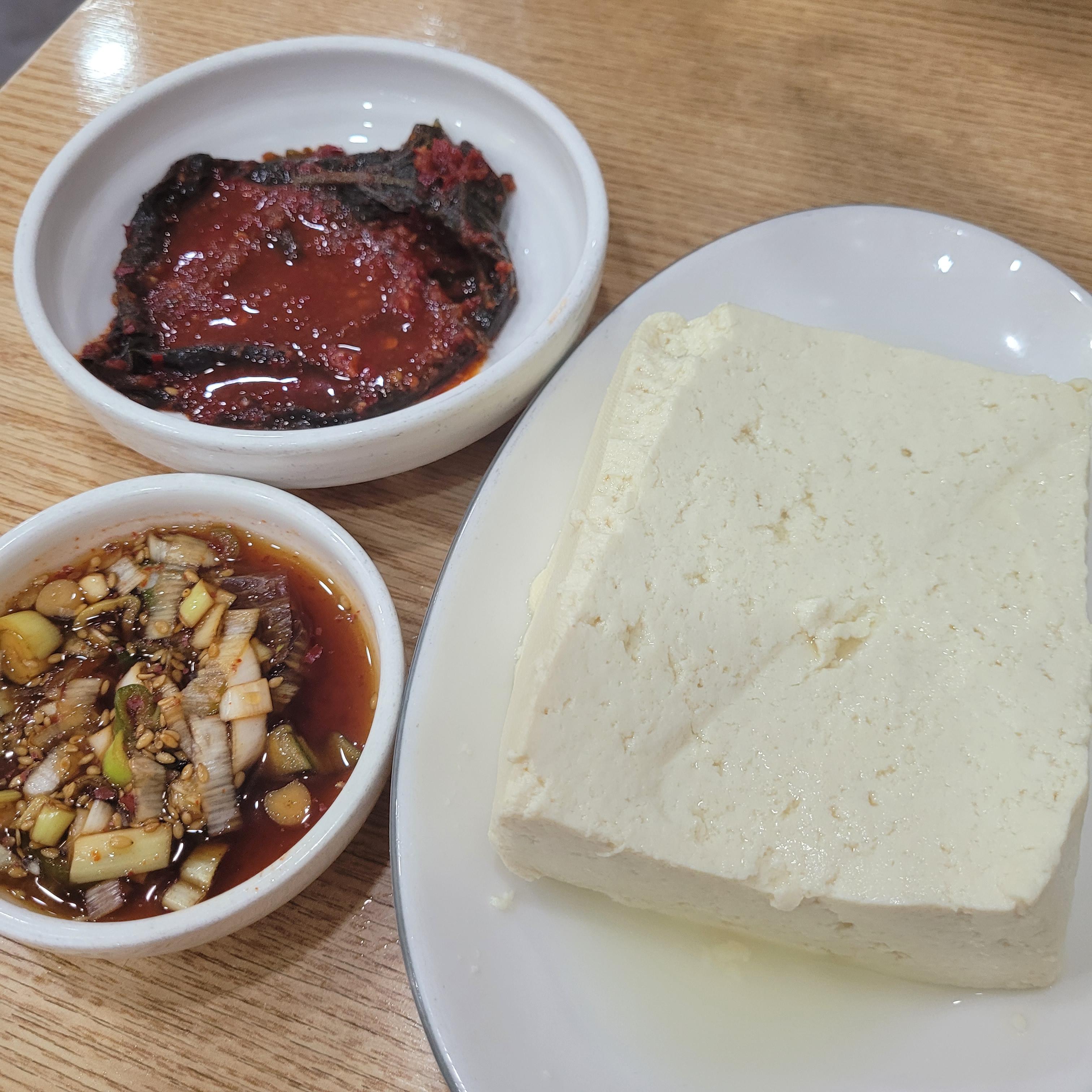 모두부는 간장과 깻잎지랑 같이 나와요.