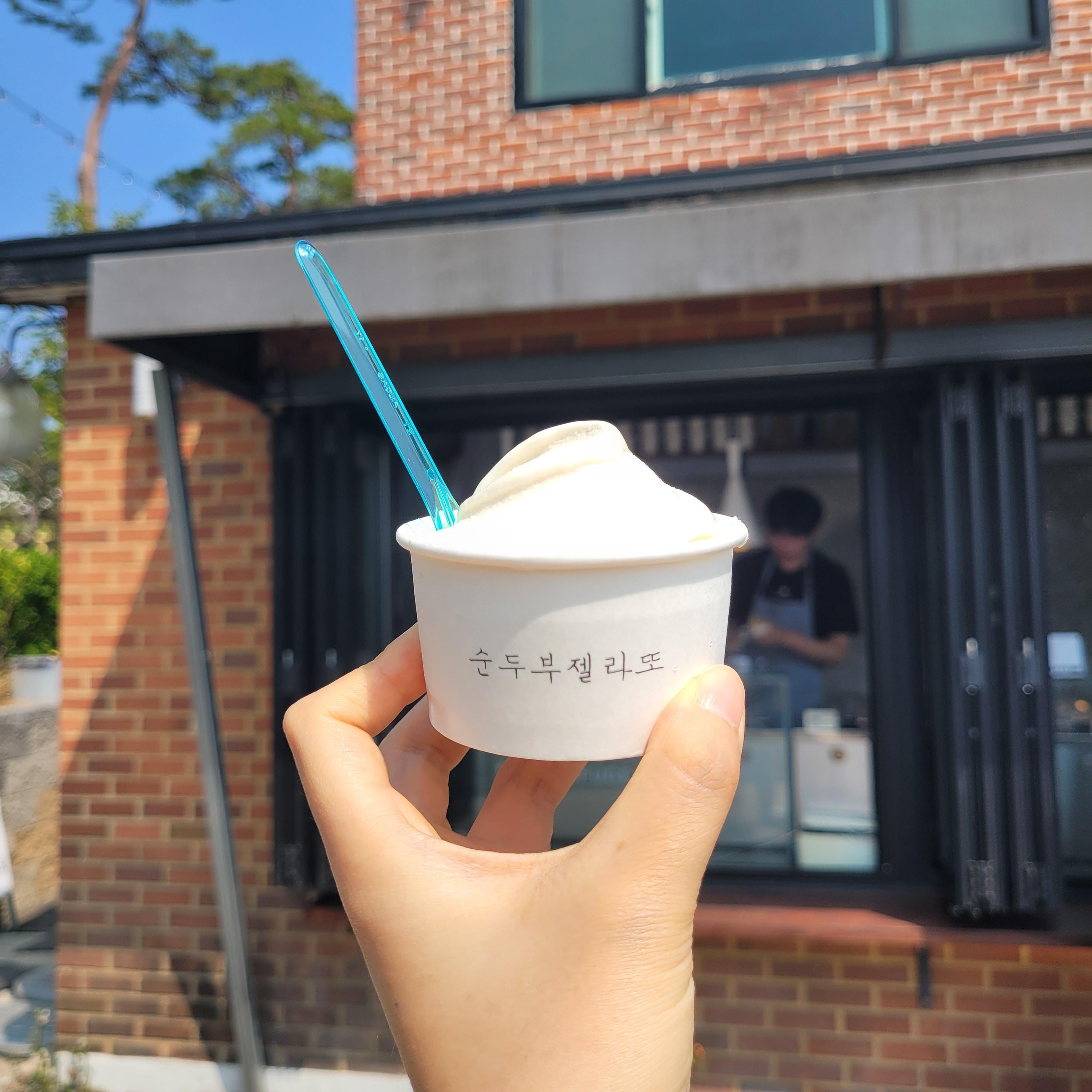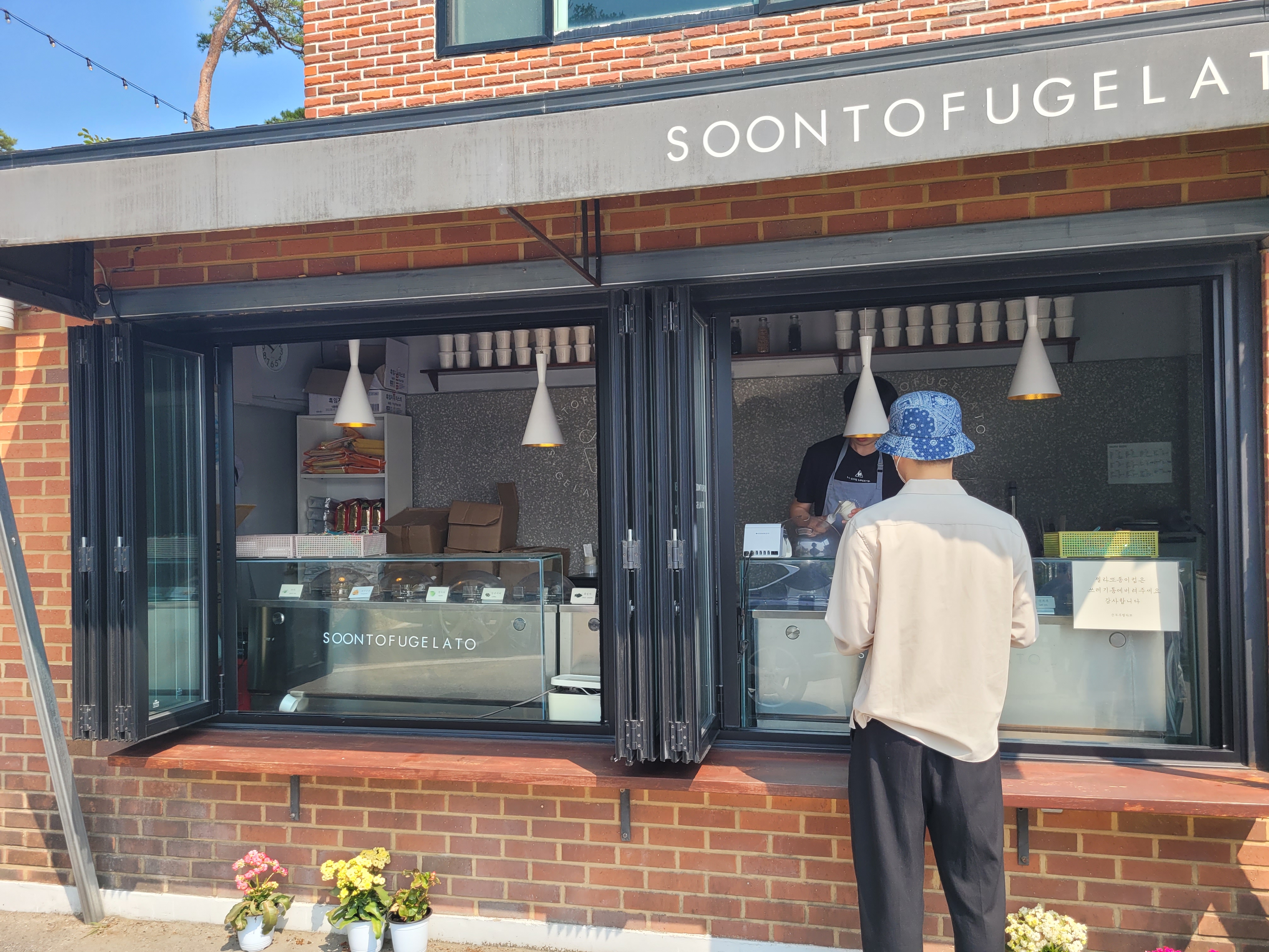 식당에서 순두부짬뽕먹고 나와서 순두부젤라또 하나씩 다 들고 가시더라고요.