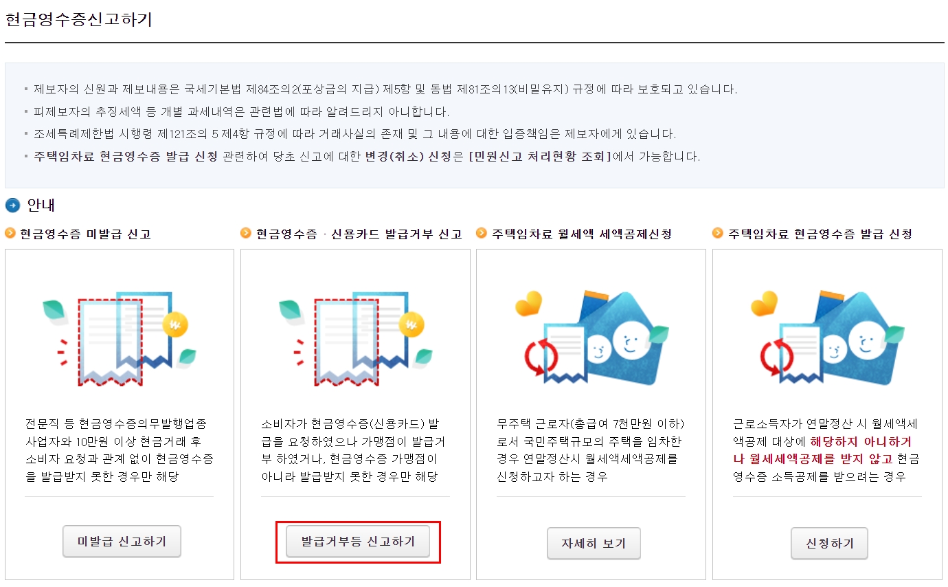 3. 현금영수증 신용카드 발급거부 신고 클릭
