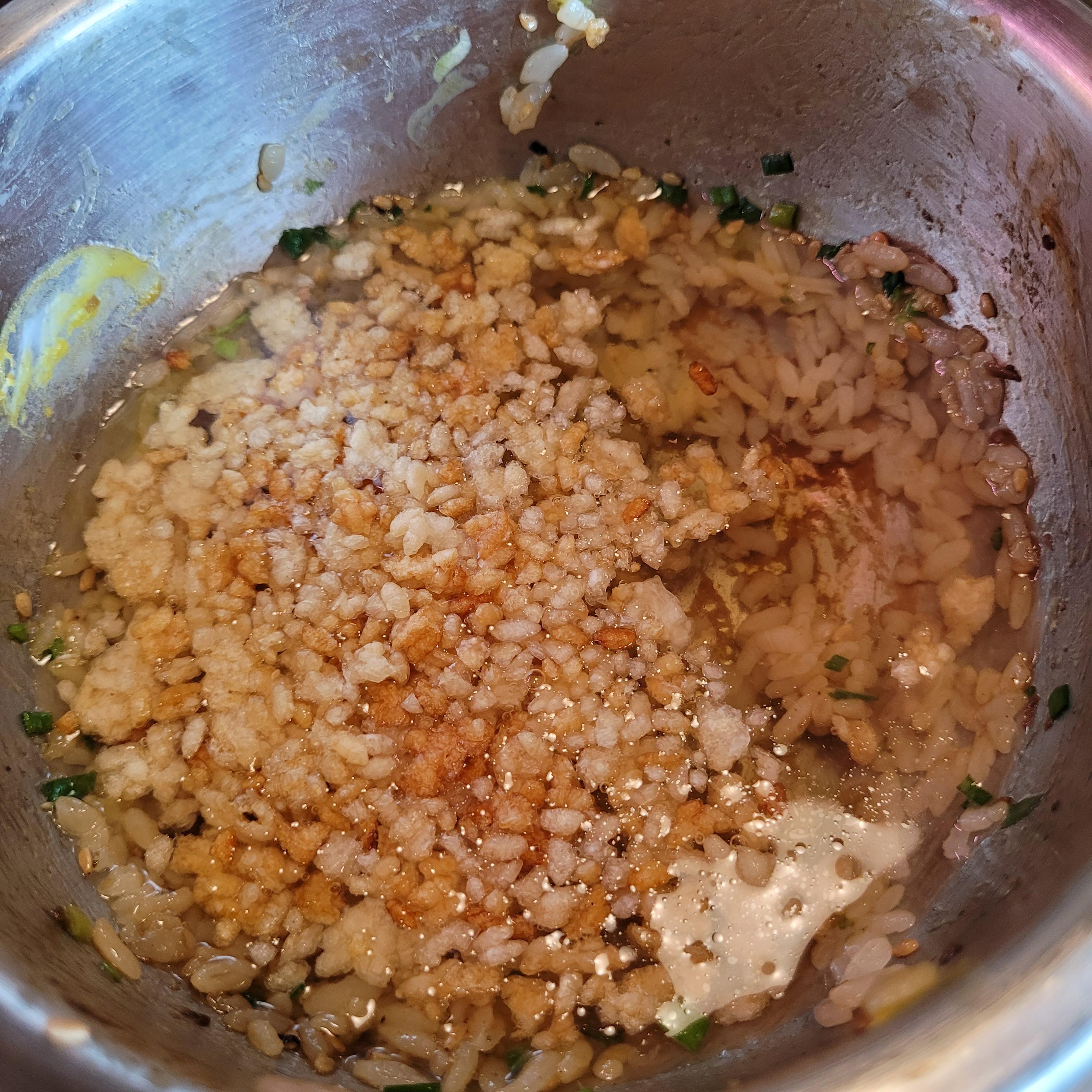 1. 간장 소스를 취향에 맞게 넣어서 솥밥을 섞습니다.