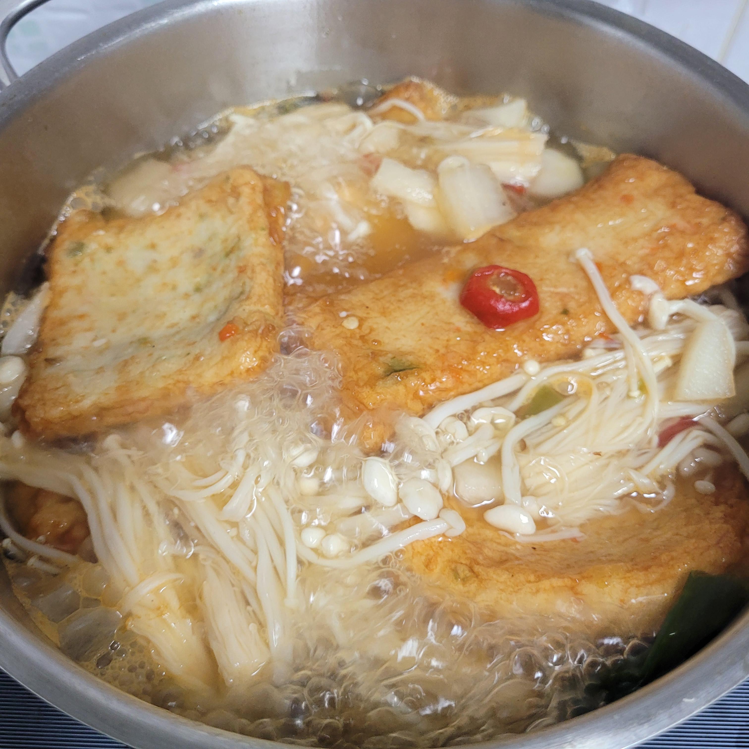 3. 물이 끓으면 어묵 넣고 중불에서 7분 조리