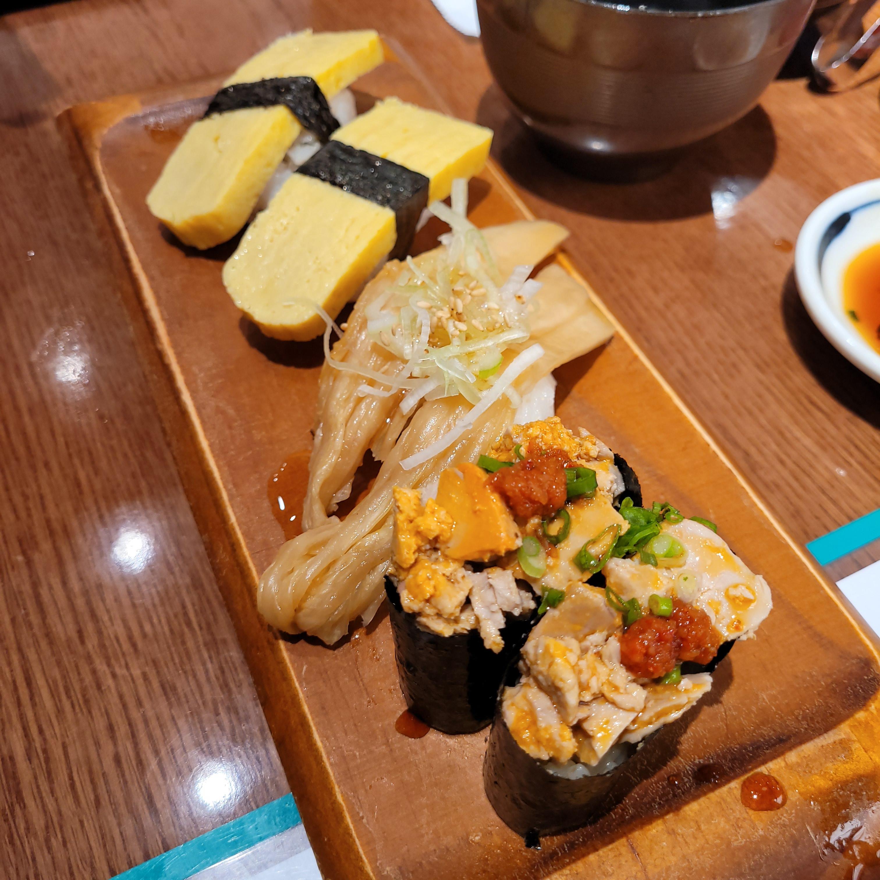 이제 좀 배불러서 마지막 저렴한 초밥 3가지 먹었어요.