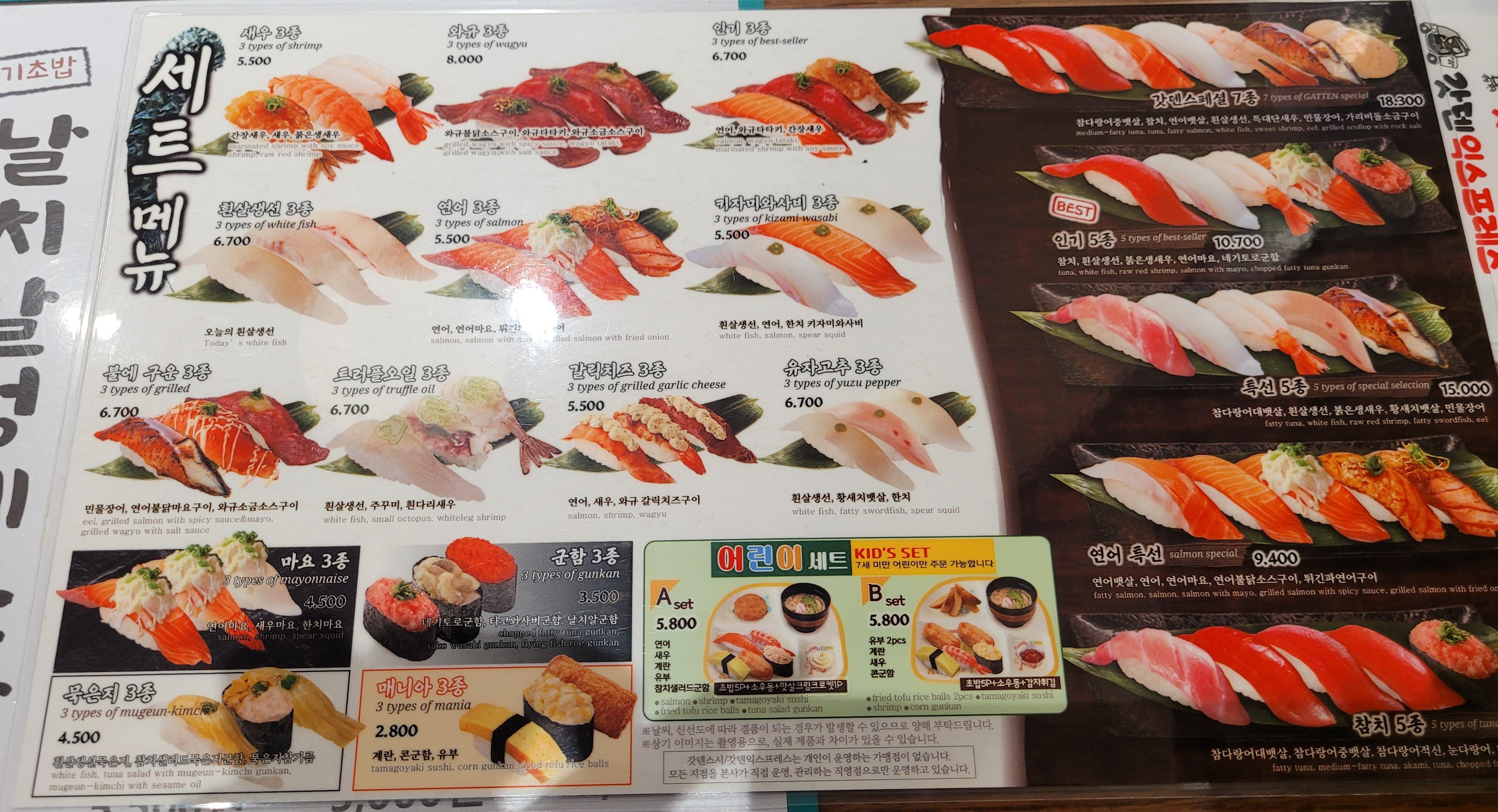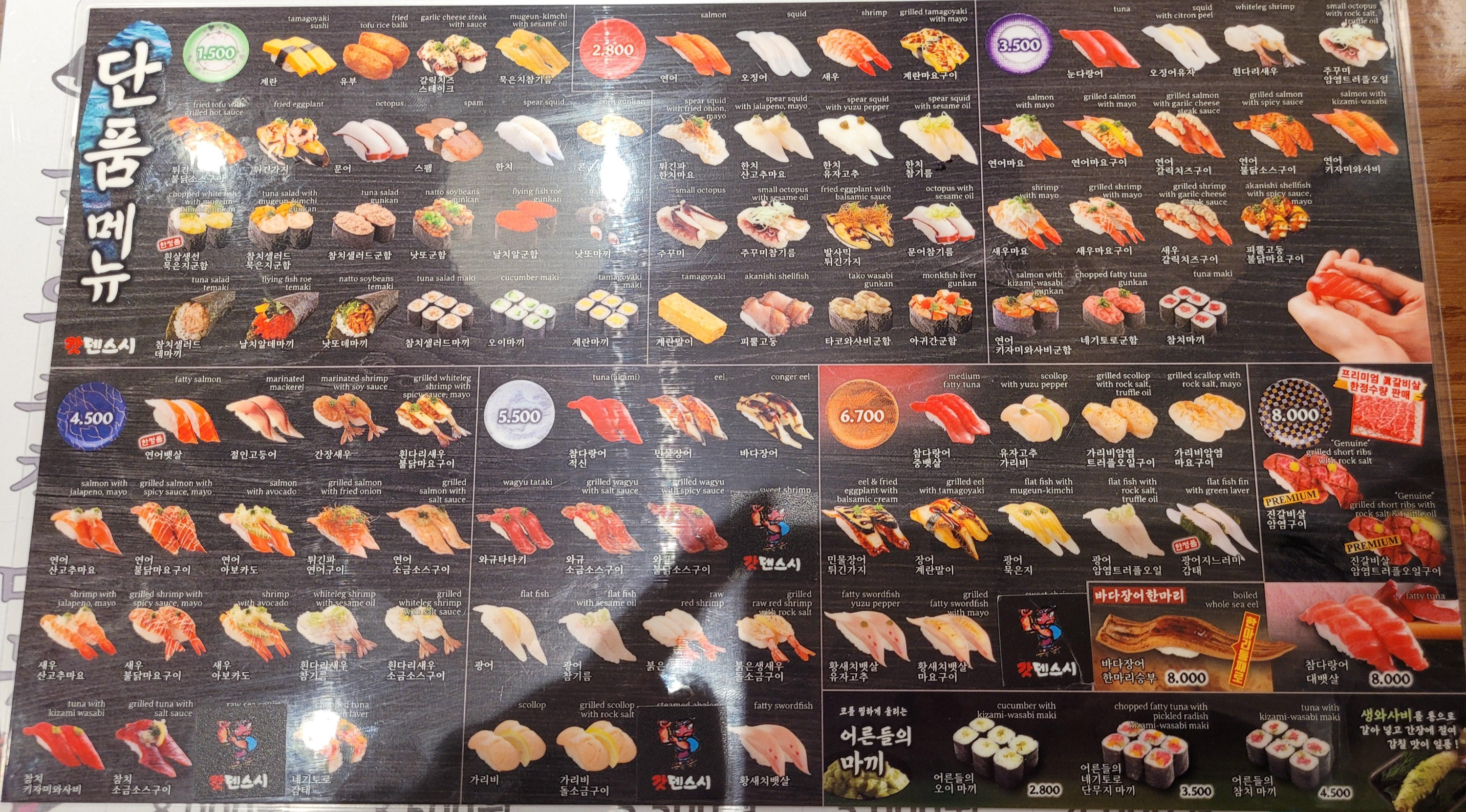 회전하는 건 인기 많고 좀 비싼 4,500원 이상 초밥만 있더라고요.