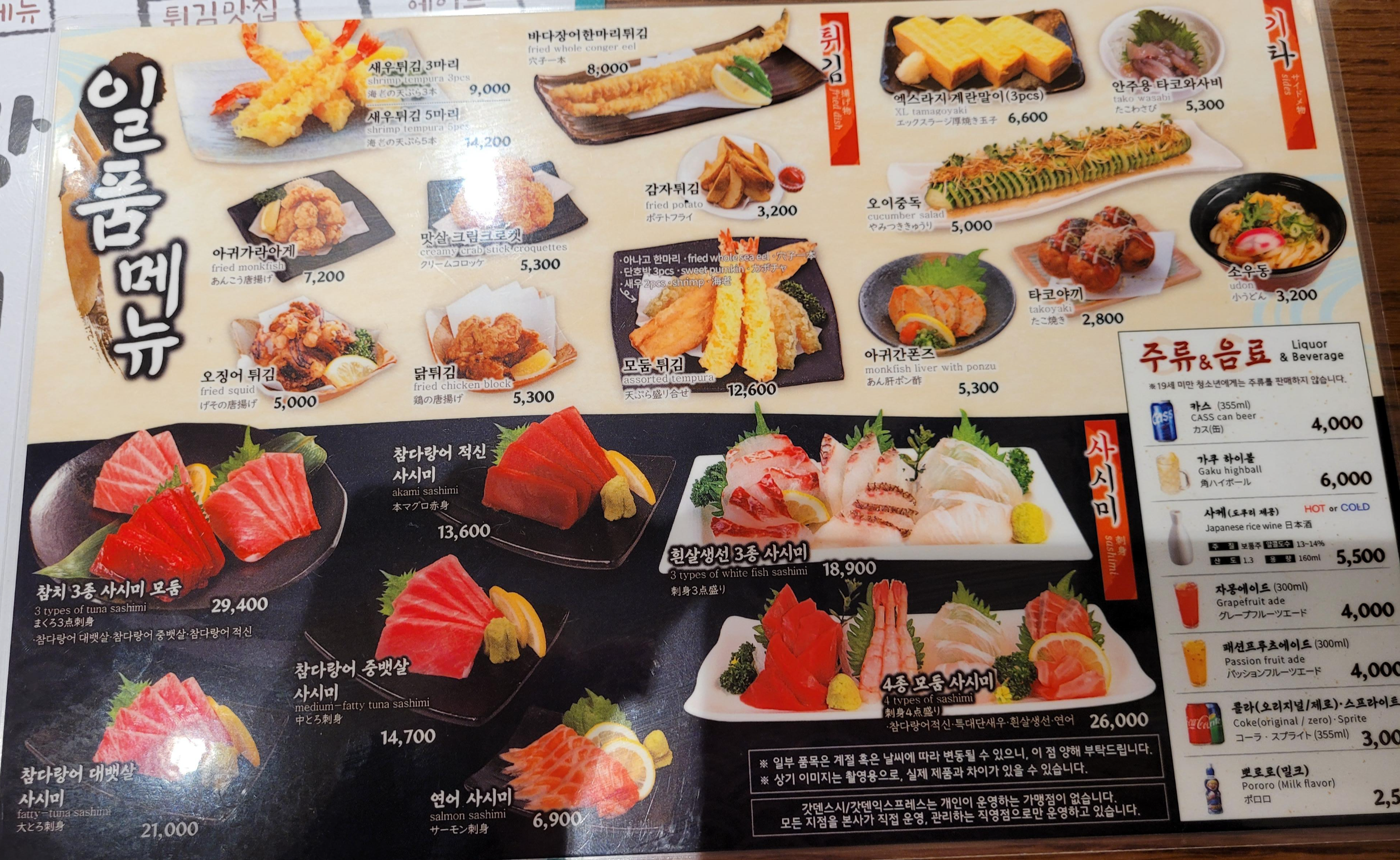 튀김과 사시미도 있어요