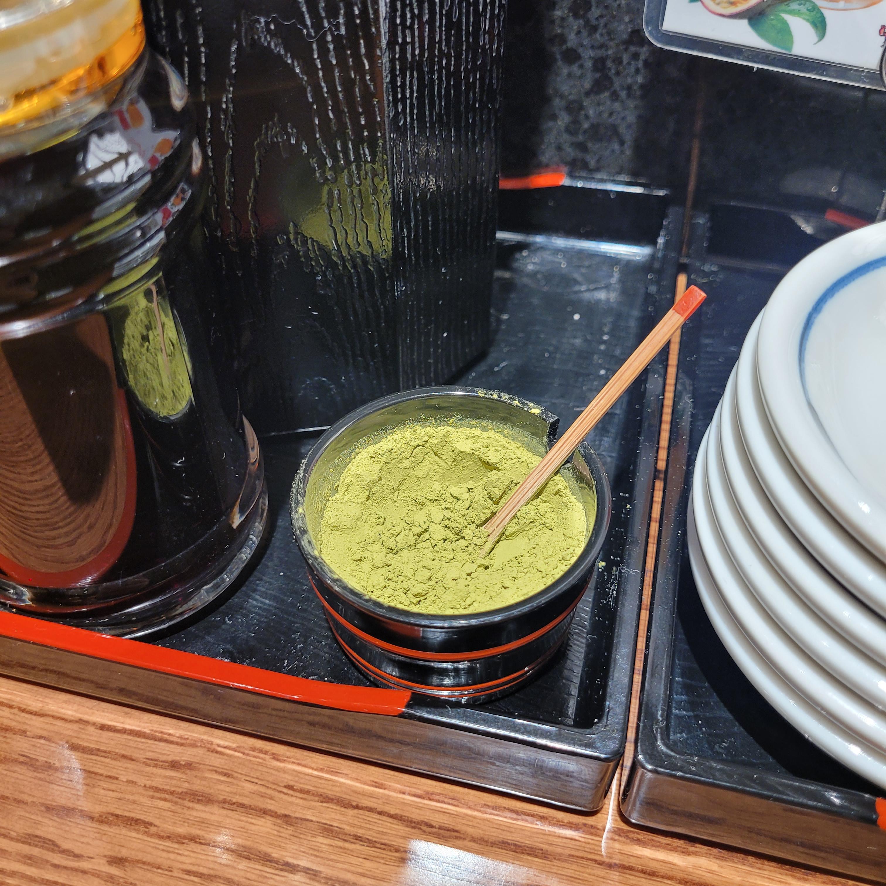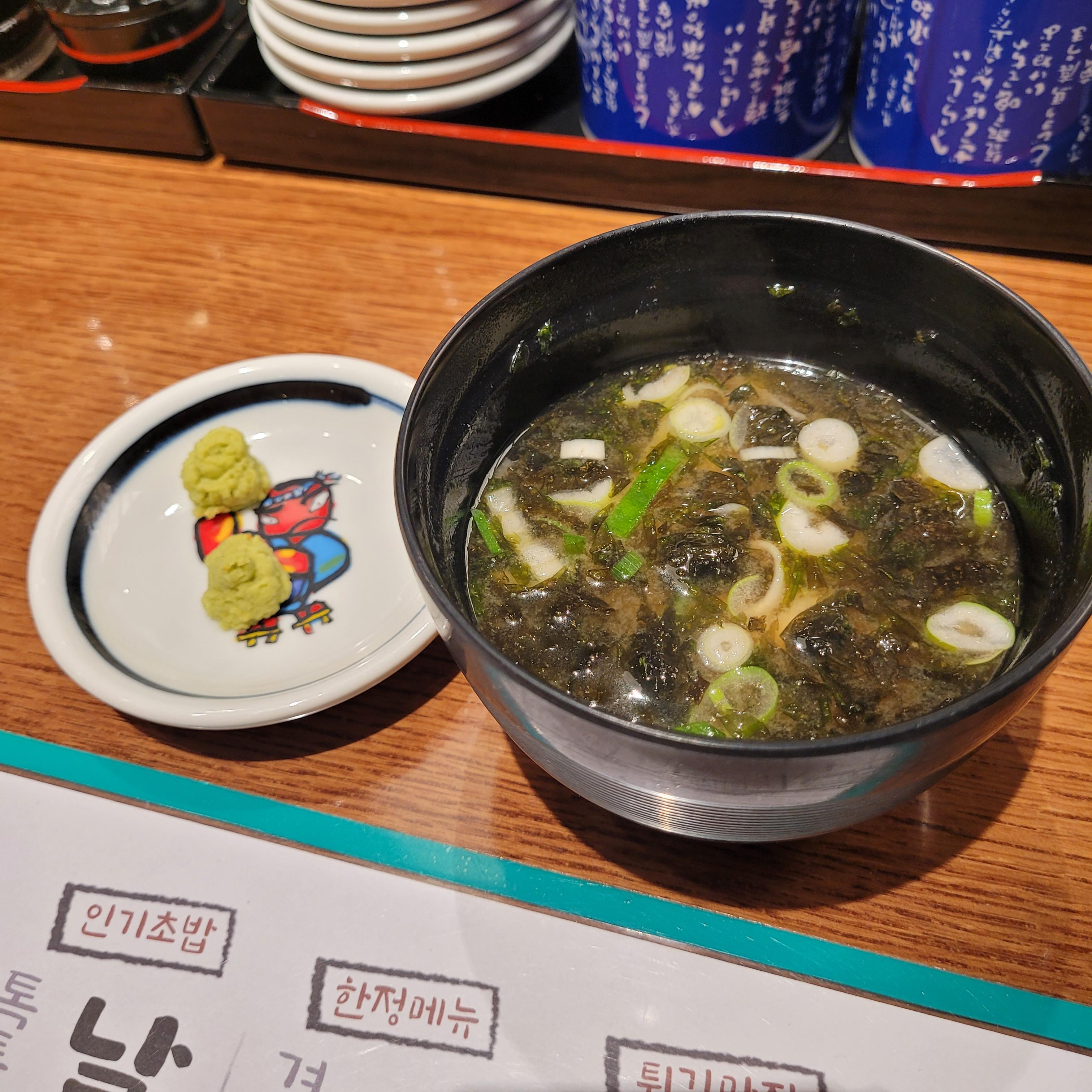 자리에 앉으면 직원분께서 장국이랑 고추냉이를 세팅해 줍니다.