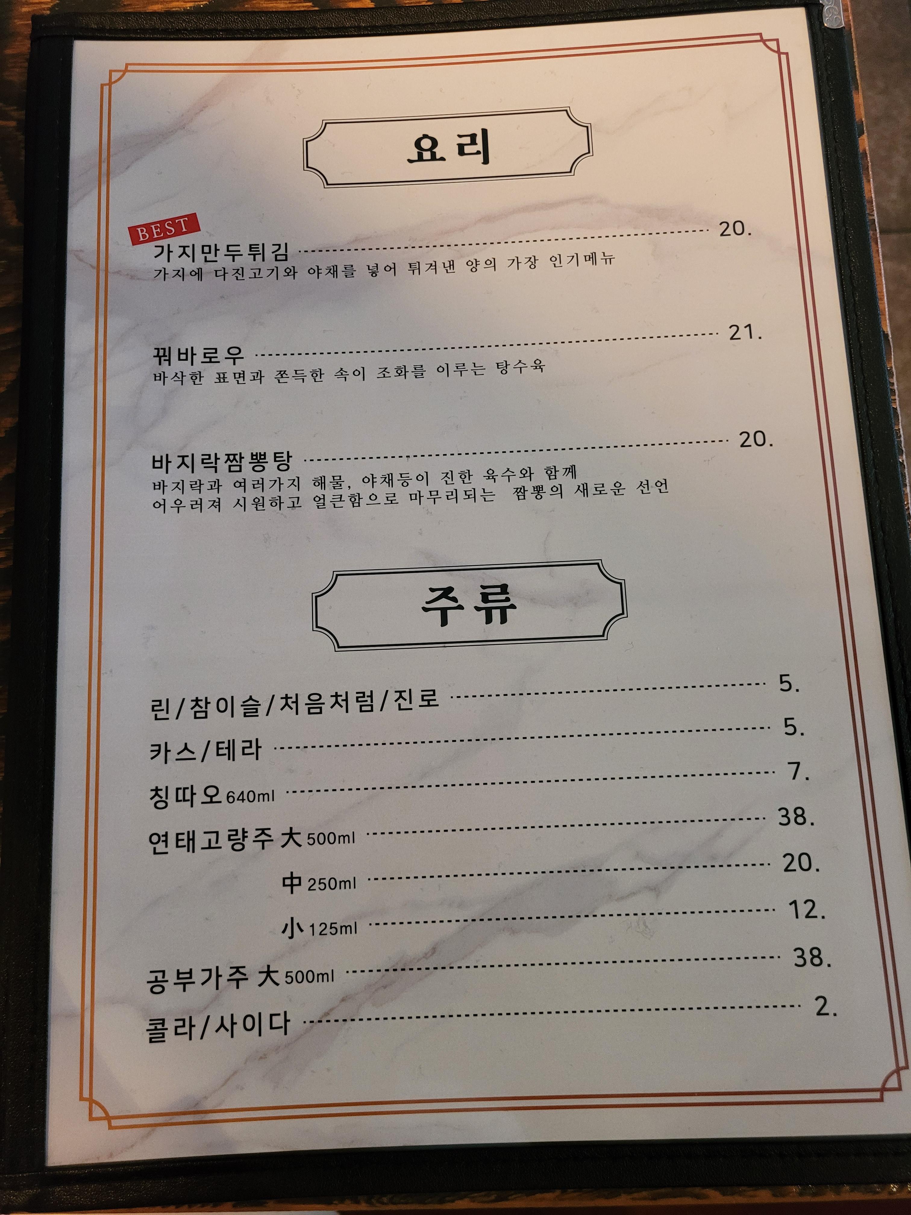 뜬금없이 바로 메뉴판!!