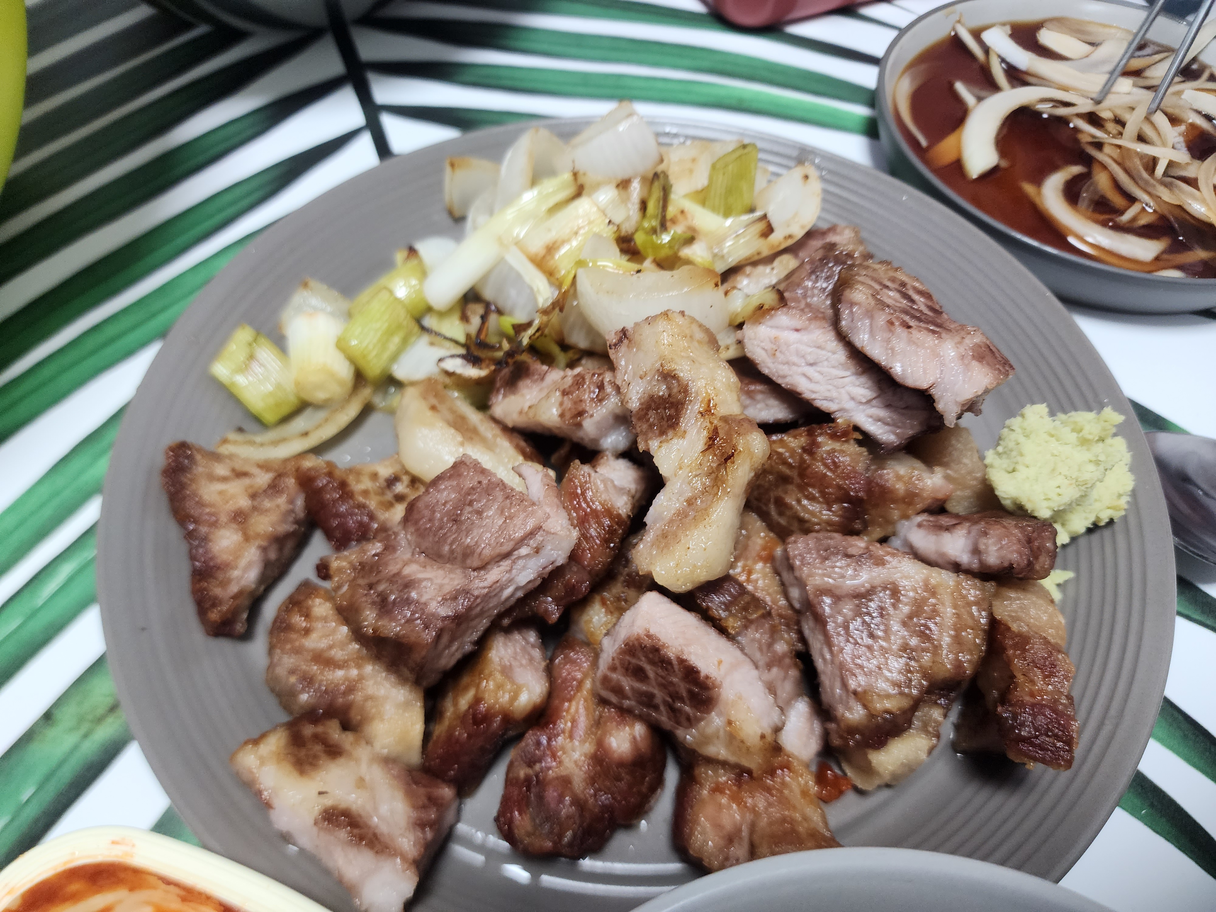 레드와인답게 돼지 목살 구이랑 페어링 했을 때 굉장히 잘 어울렸습니다.