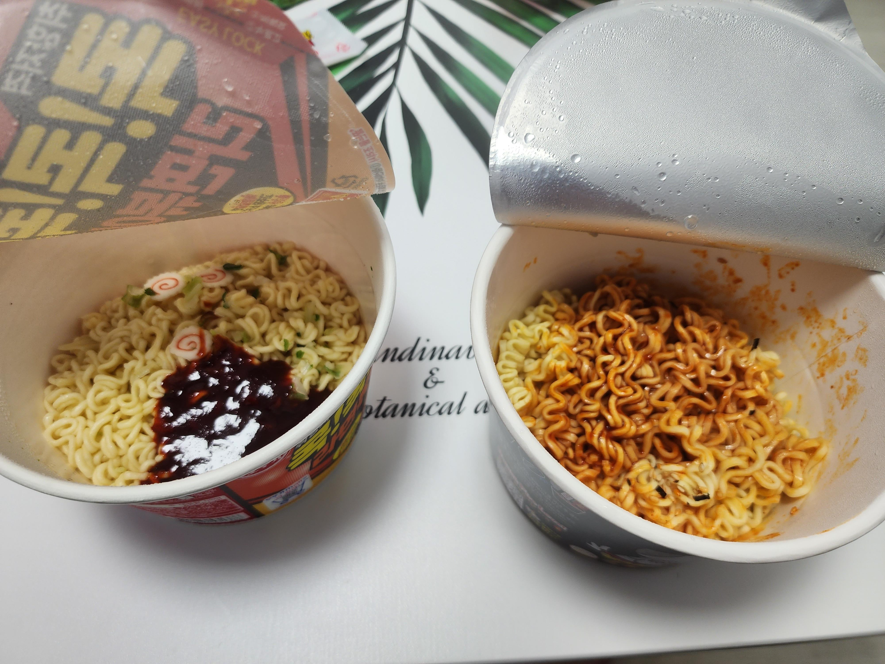 오늘은 불닭볶음면과 라면볶이를 조합하여 먹어봤는데요.
