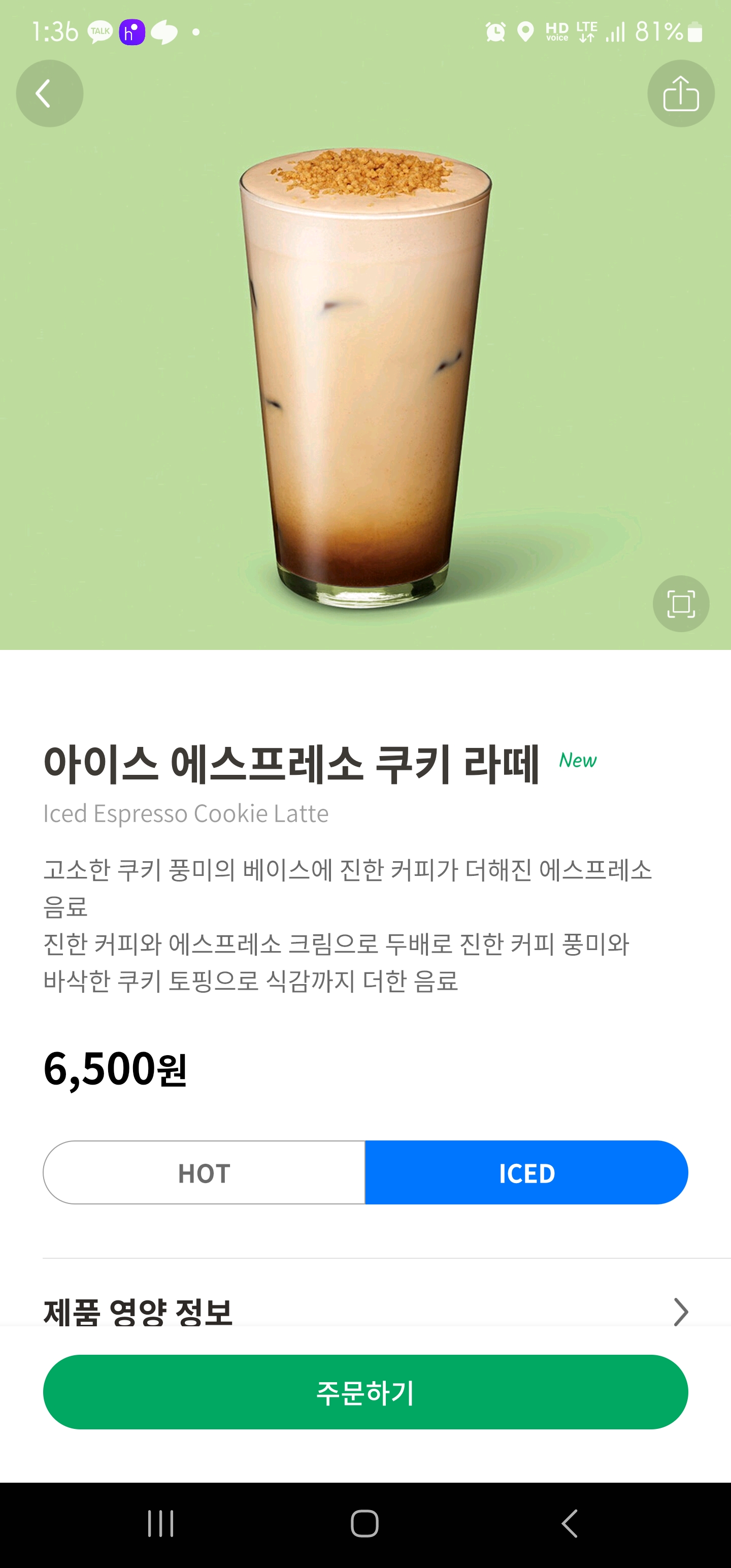 에스프레소 쿠키 라떼 정보