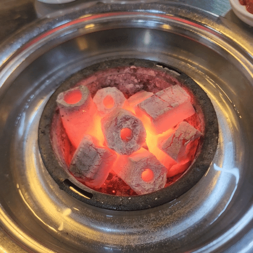 밑반찬이 나오고 조금 기다리시면 바로 숯불이 들어옵니다.
