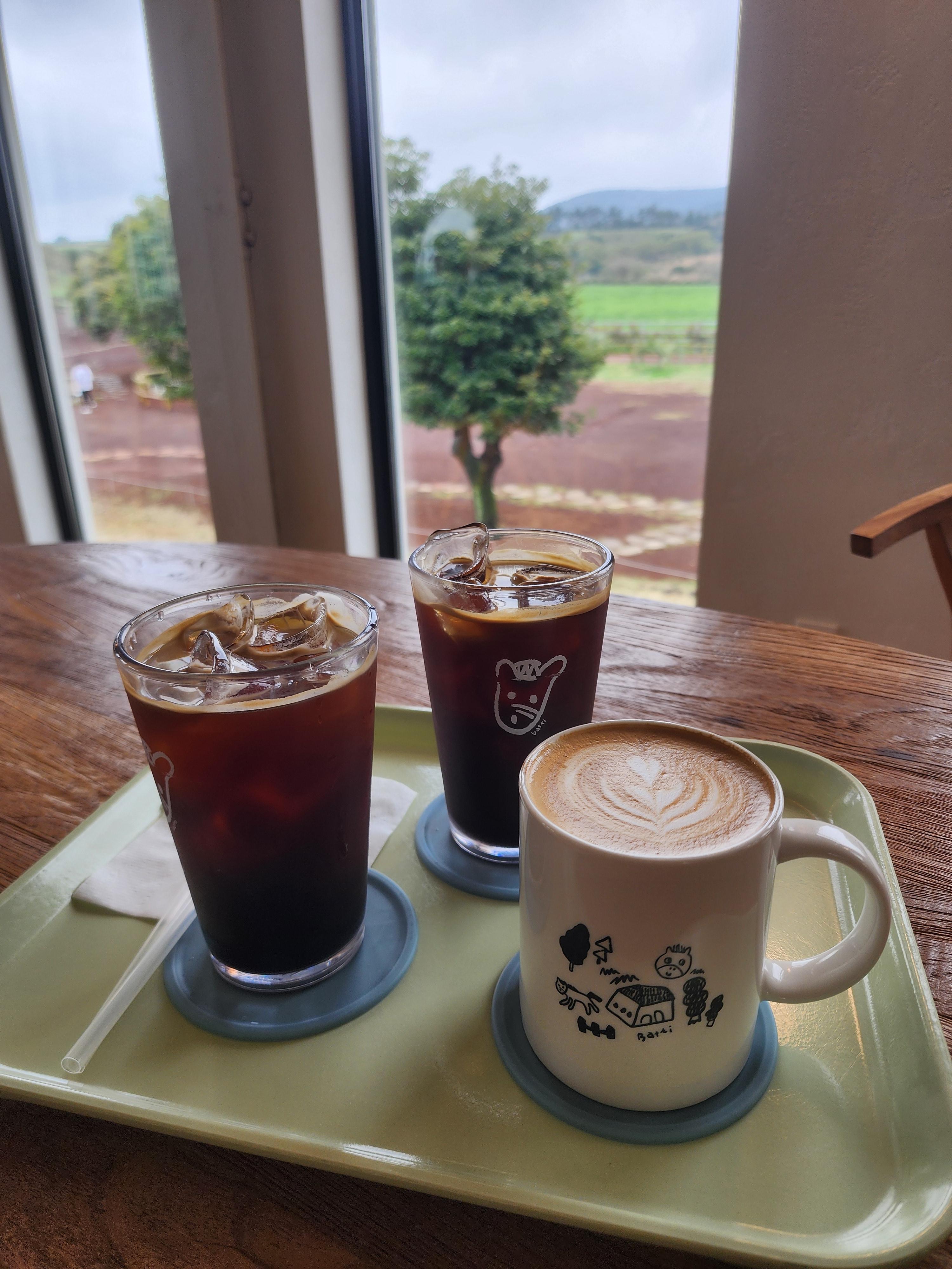 저희는 아이스 아메리카노 2잔, 따뜻한 카페라떼 1잔 마셨습니다.