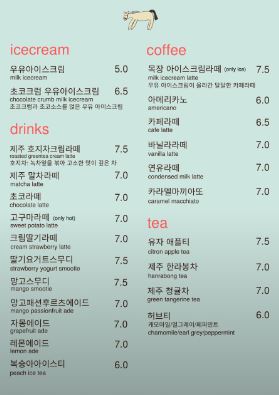 목장카페 밭디 메뉴 및 가격입니다.