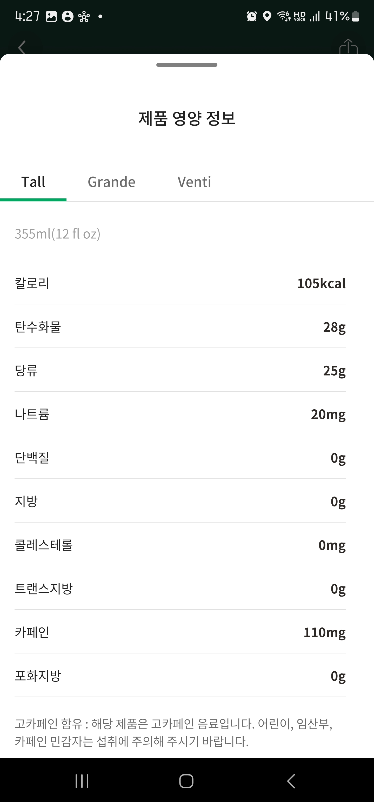 355ml에 카페인이 110mg이면 고카페인 음료인 것 같습니다.