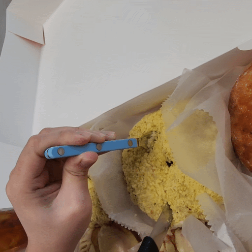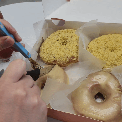 이제 도넛을 먹기 위해 컷팅 들어갑니다잉