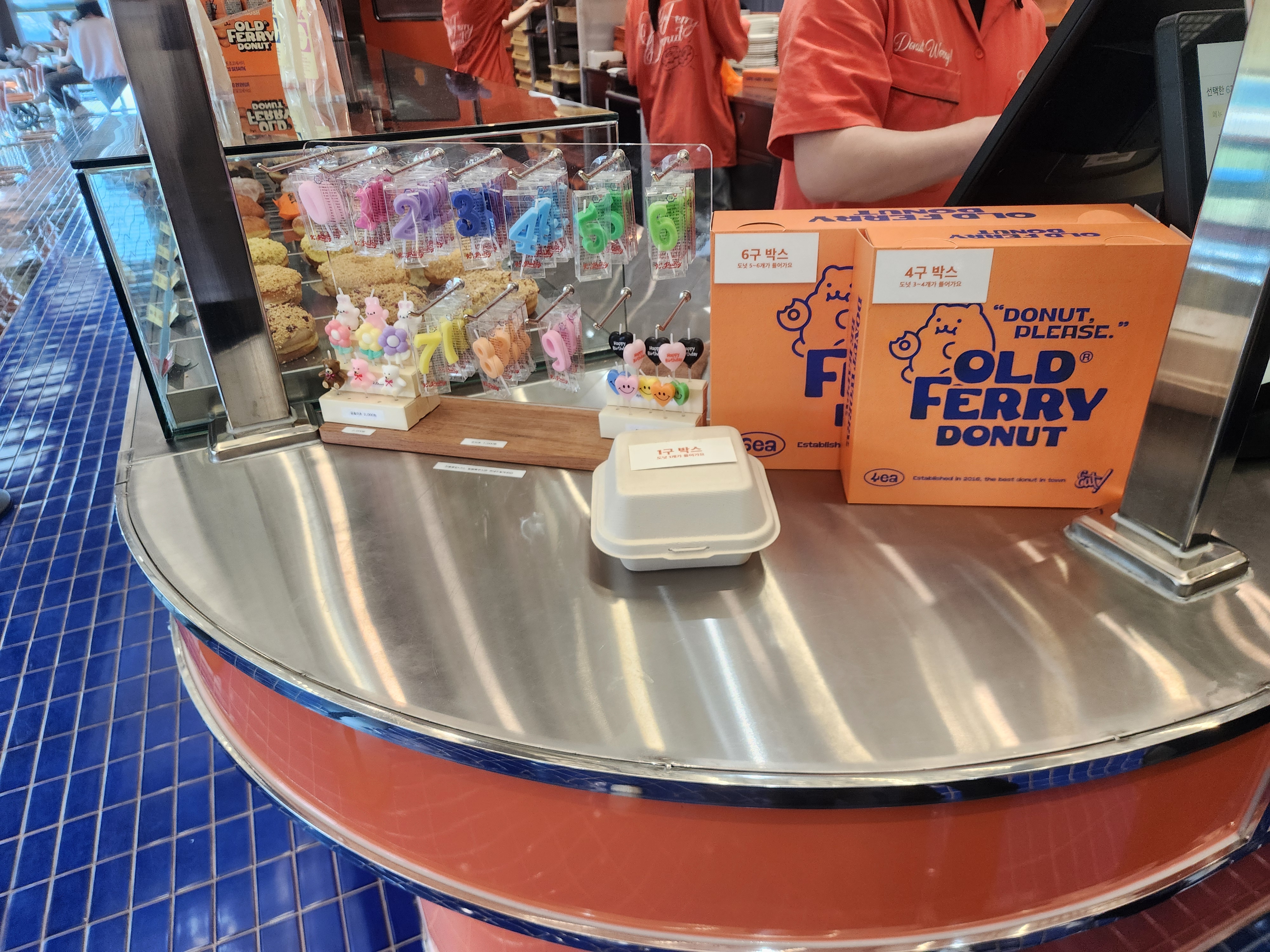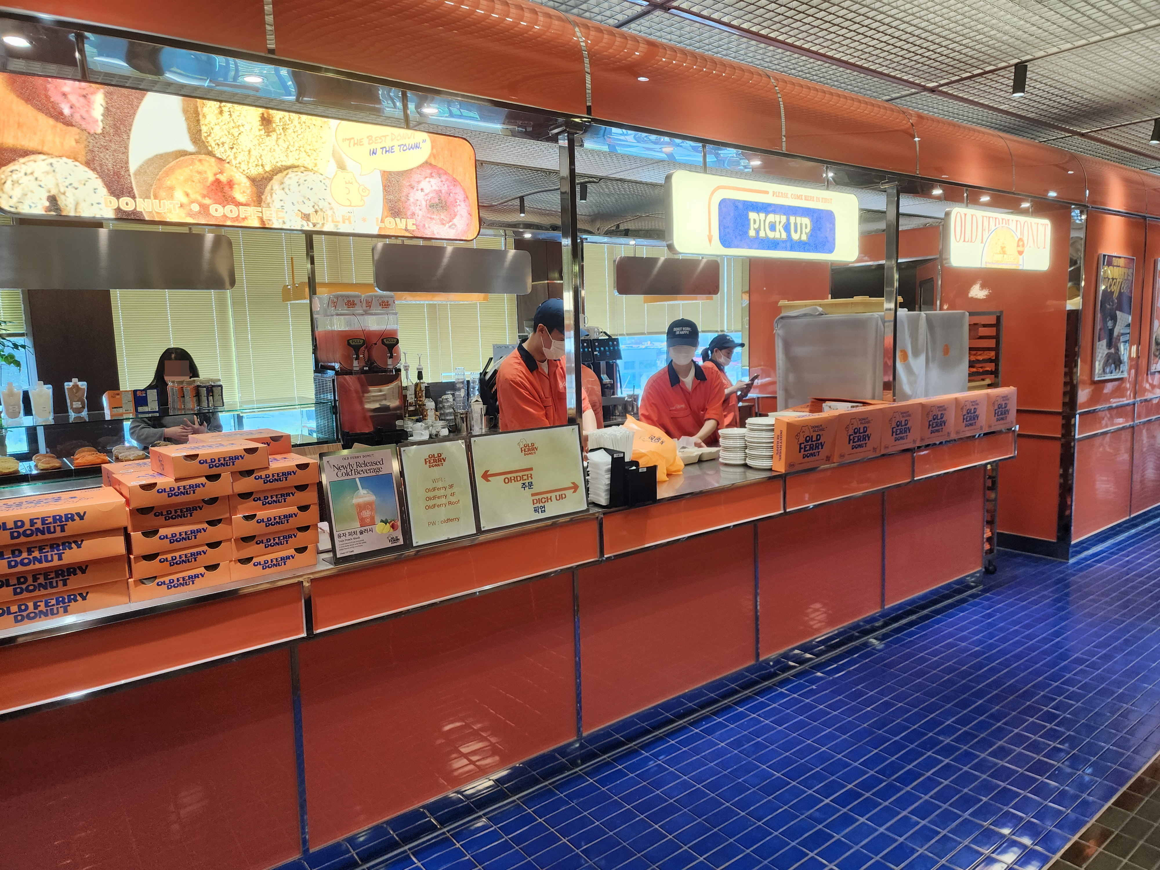 픽업으로 가서 포장된 도넛을 받아줍니다.