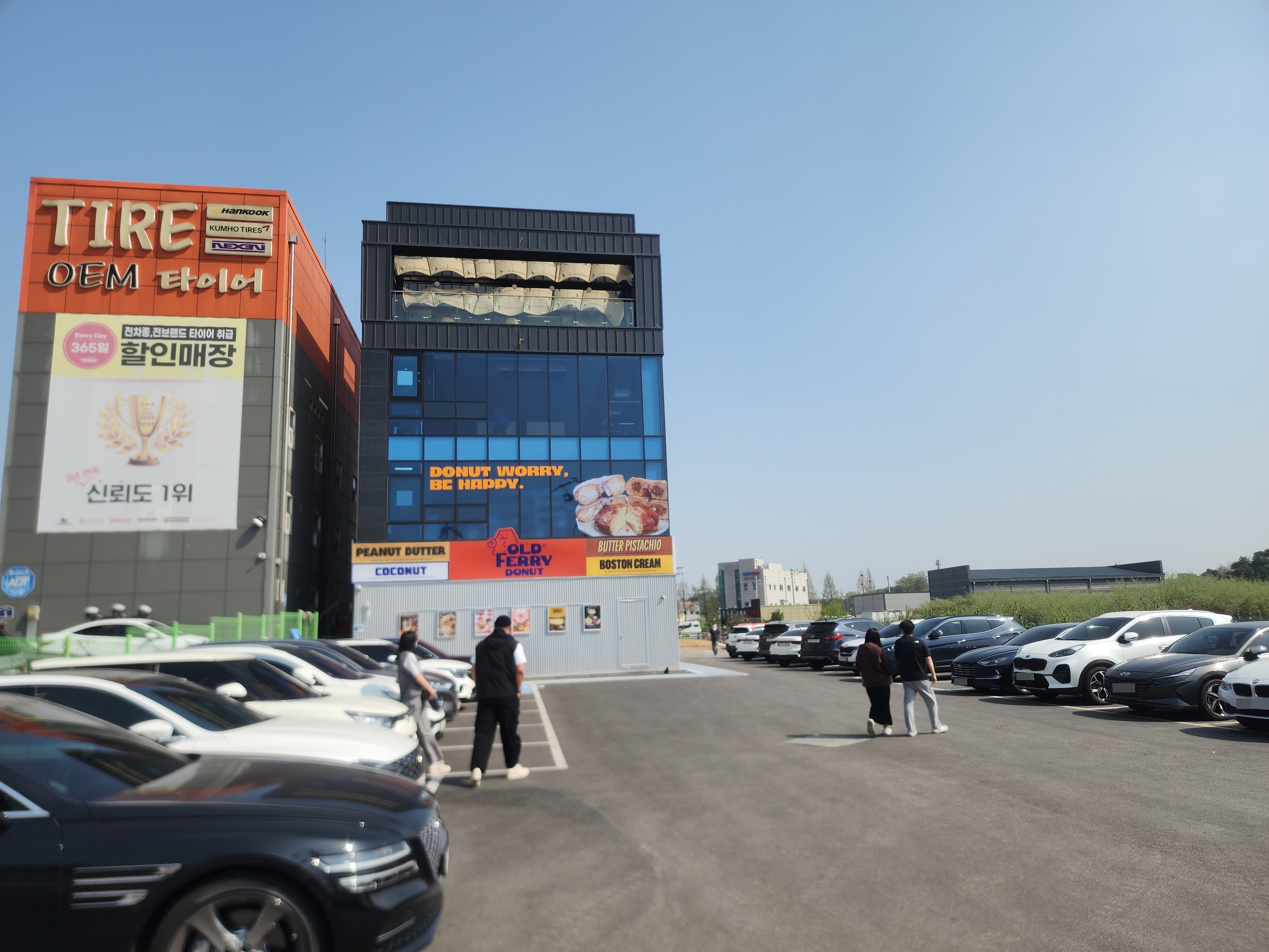 안에 주차 자리가 없는 경우 올드페리도넛 옆에 있는 타이어 집 들어가자마자 있는 주차장에 해도 괜찮다고 안내해 줍니다.