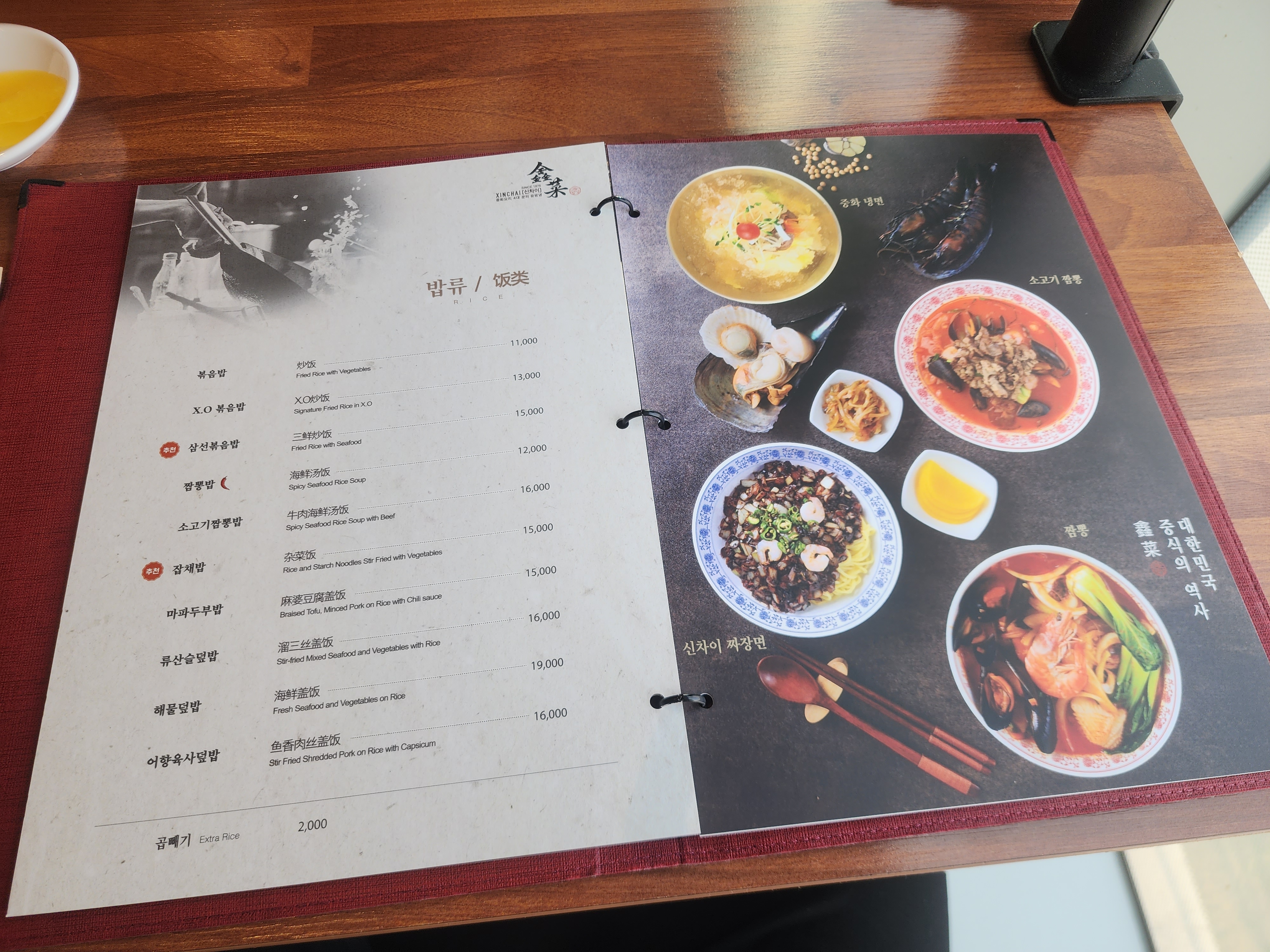 신차이 메뉴 및 가격입니다.