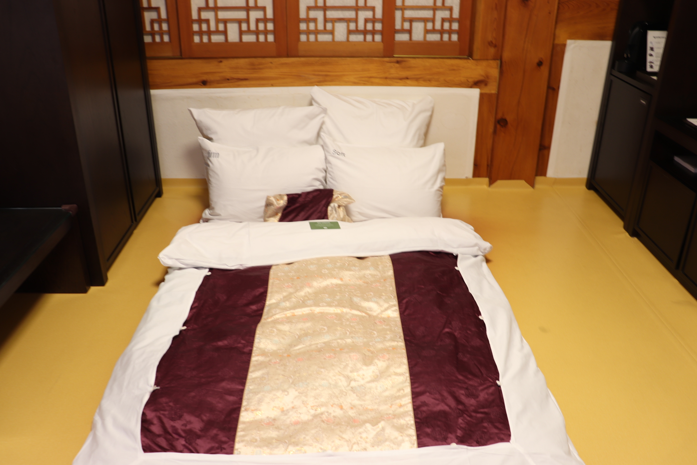 방 내부는 온돌과 전통적인 문양의 이불로