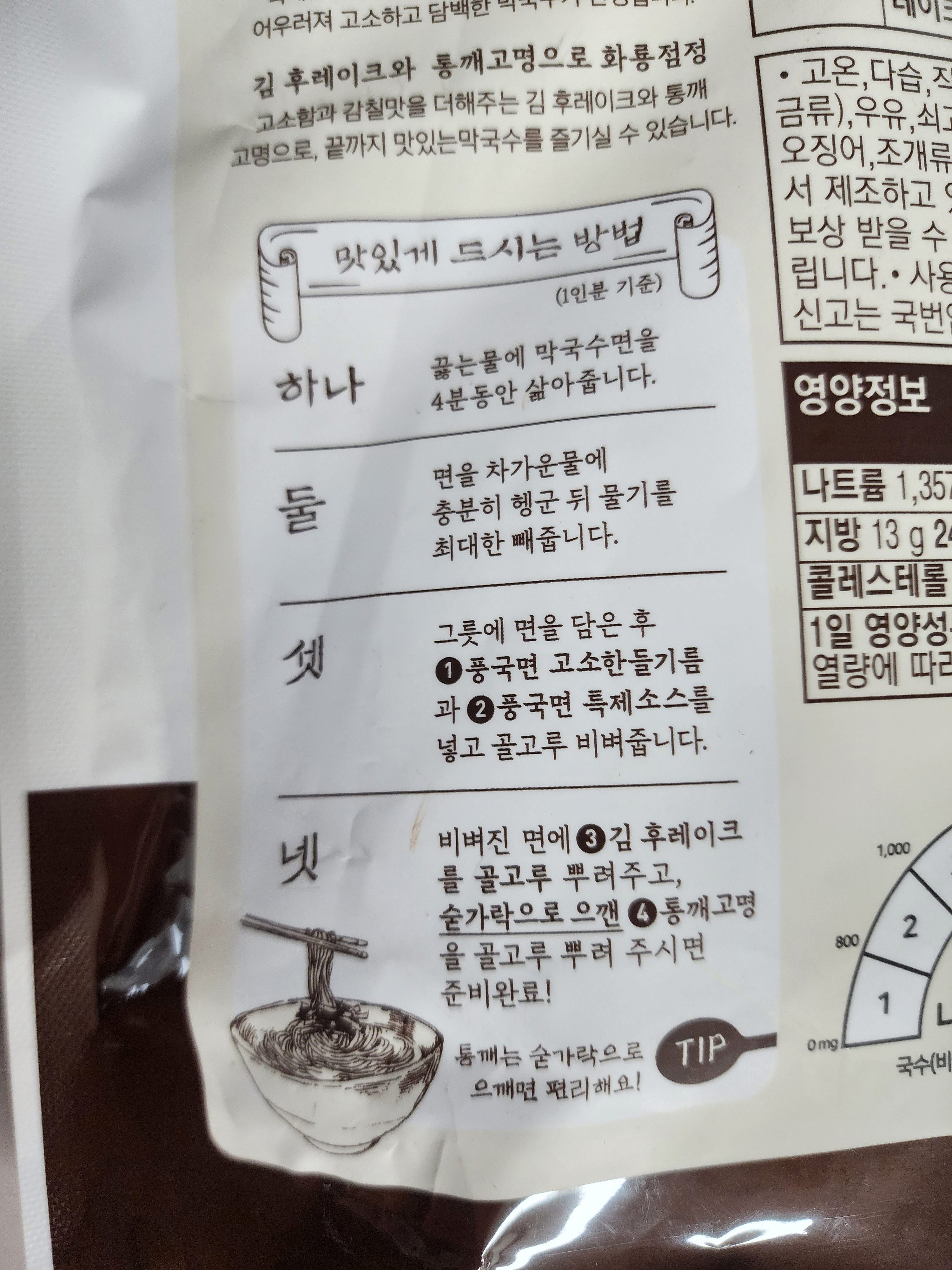 풍국면 들기름 막국수를 맛있게 먹는 방법입니다.