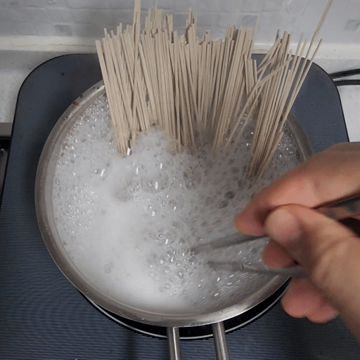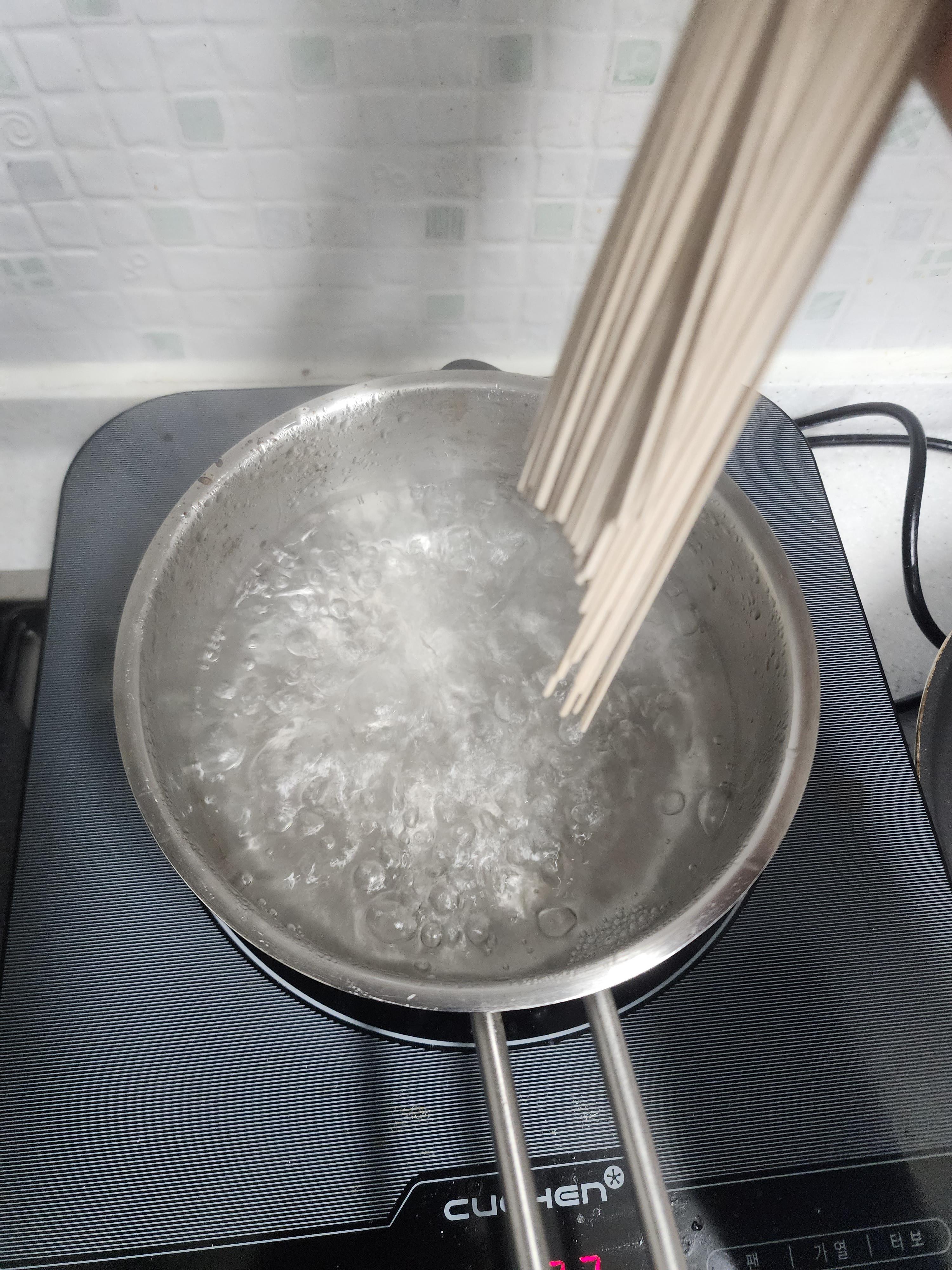 물이 끓으면 막국수면을 야무지게 넣어줍니다.