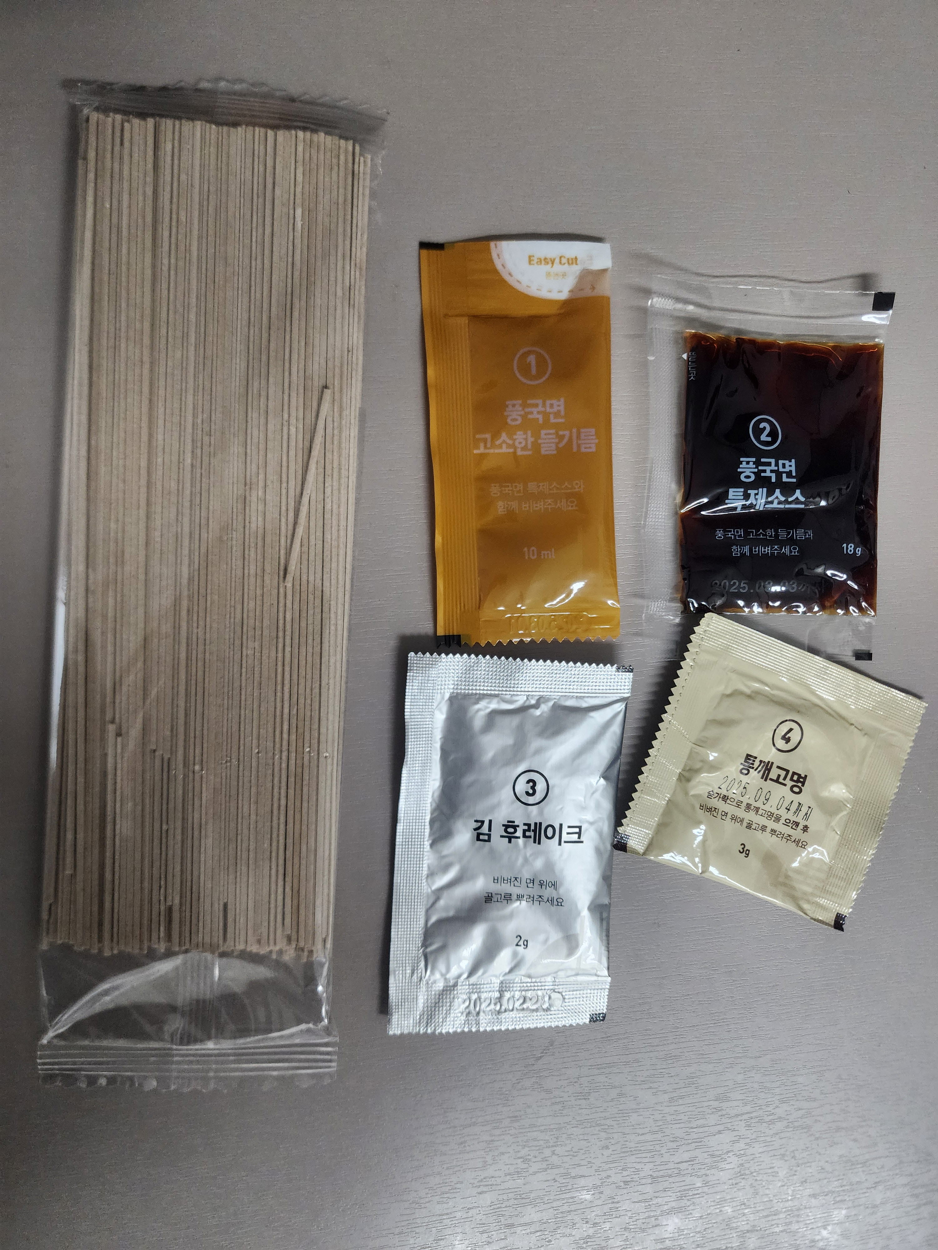 풍국면 들기름 막국수를 맛있게 만들기 위해서 총 5가지 재료가 들어 있습니다.