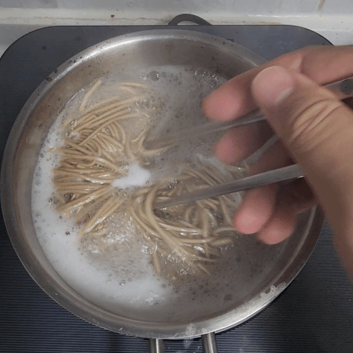 이제 면도 넣었고 4분 동안 삶아줄 건데요.