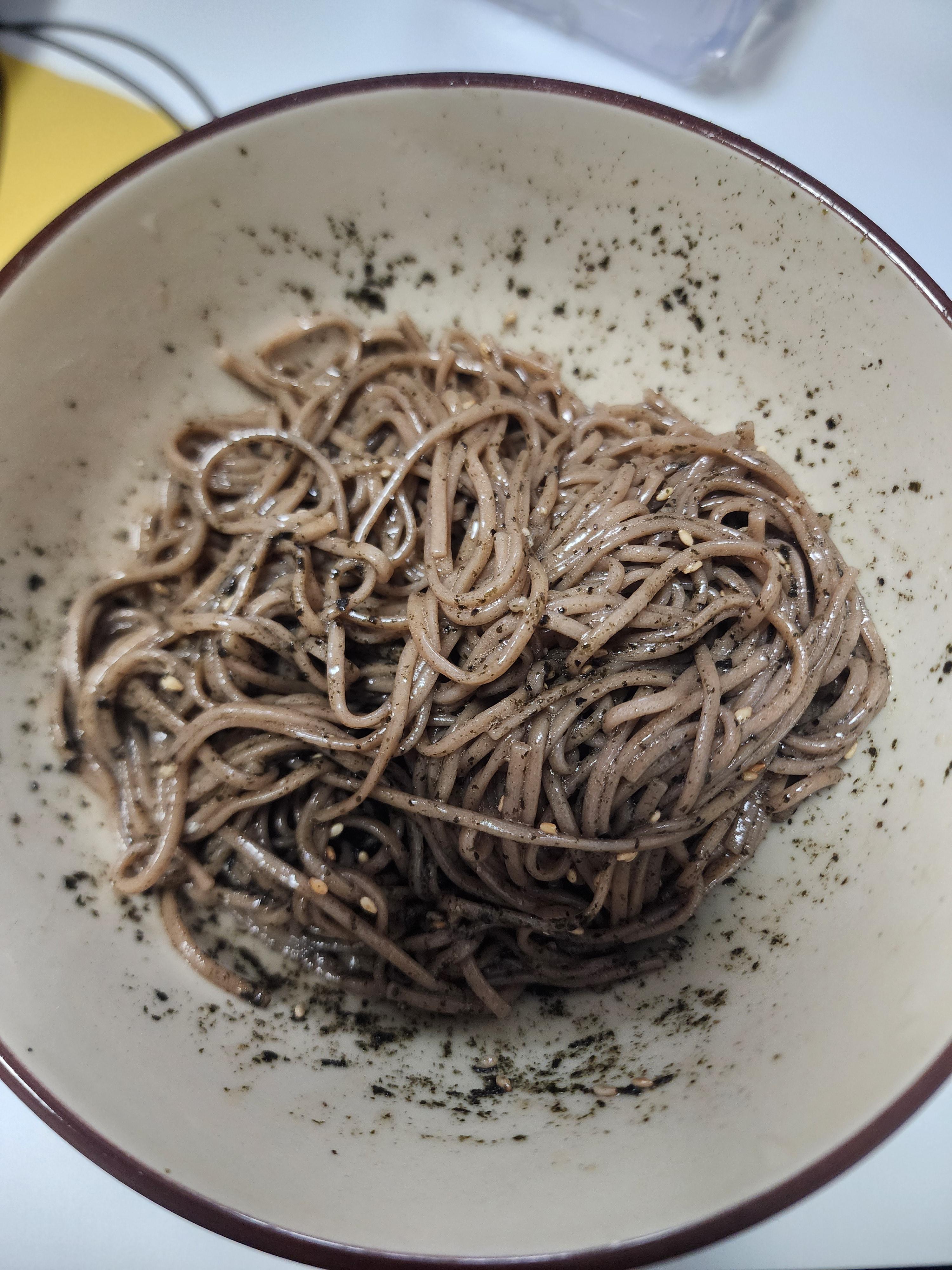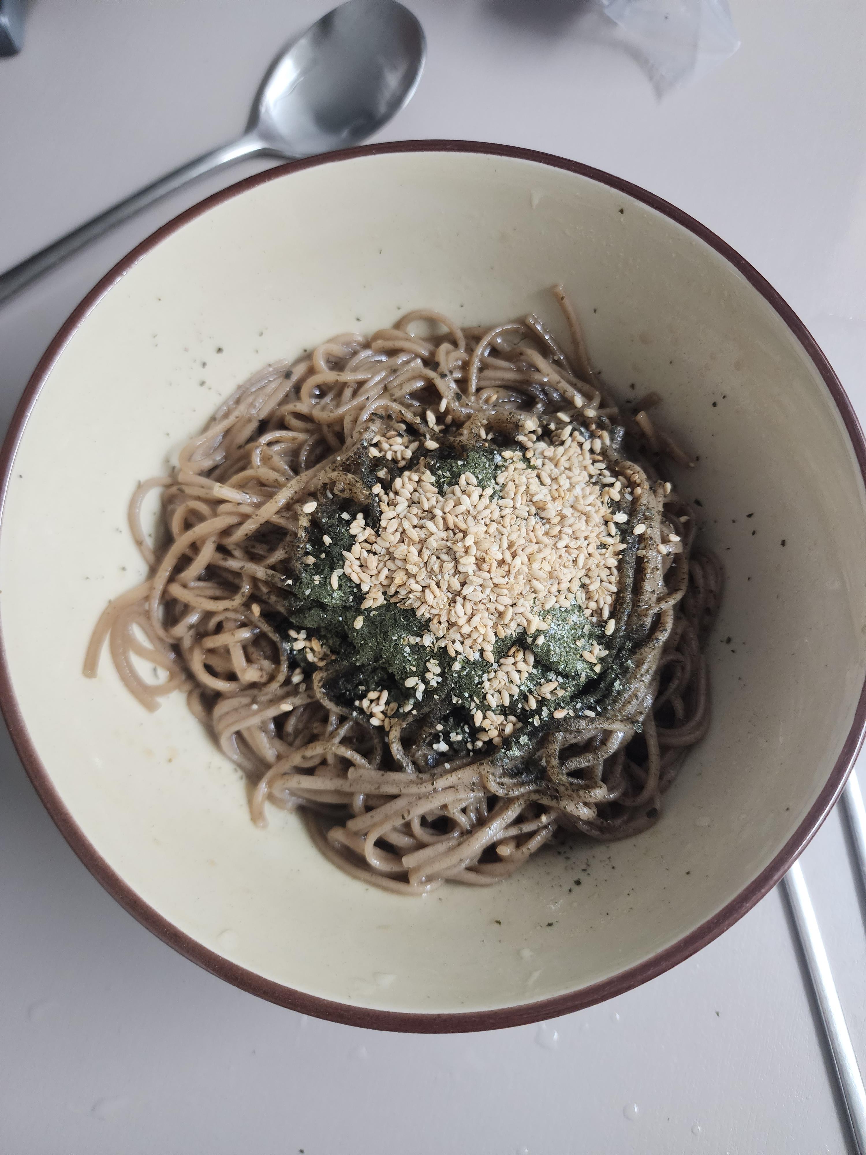 막국수면 사이사이에 김 후레이크가 묻어 있어서 좋습니다.