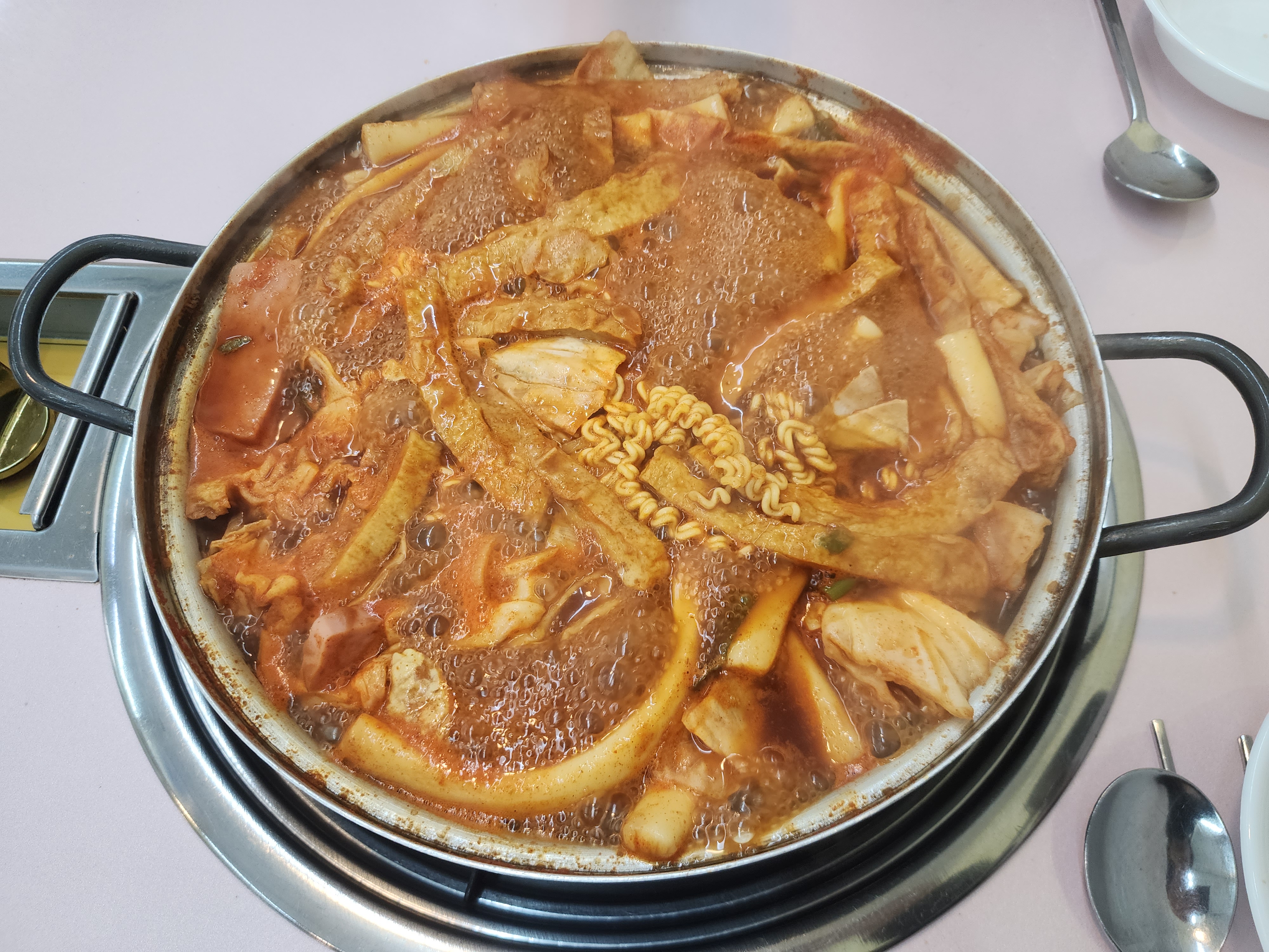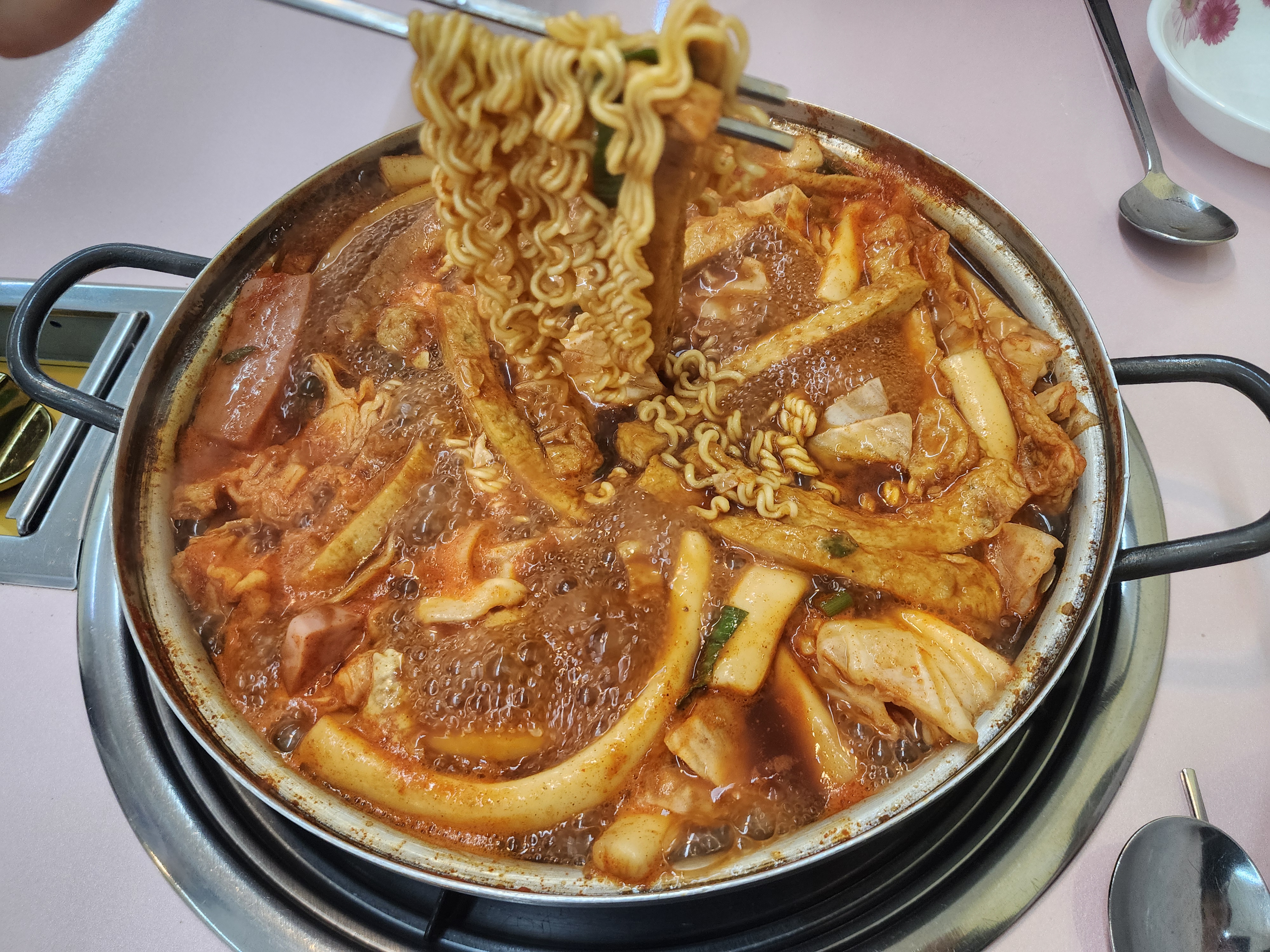 즉석 떡볶이답게 저희가 야무지게 끓이면서 먹으면 되는데요.