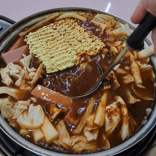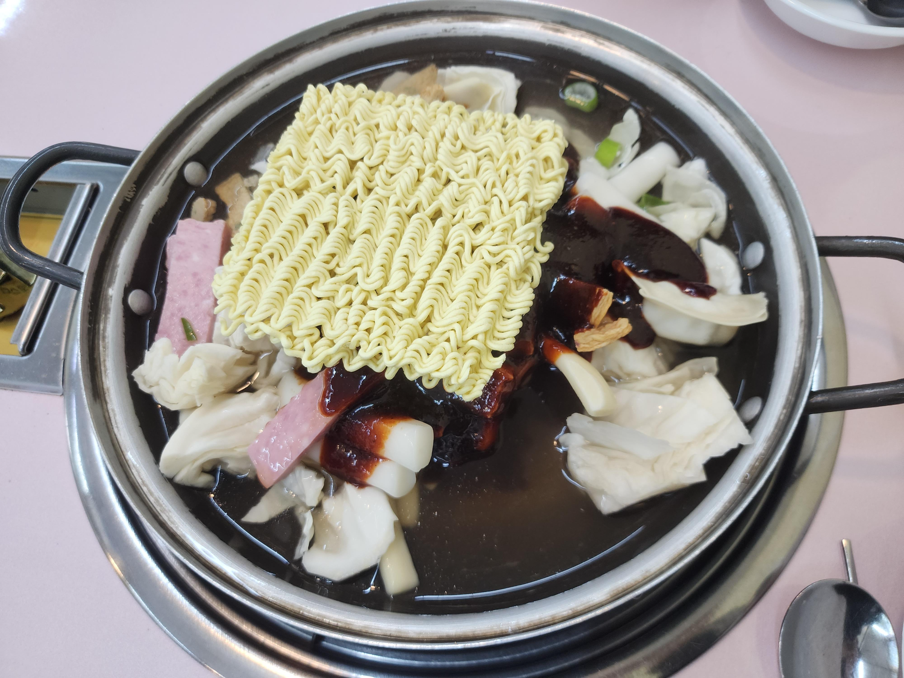 들어간 재료를 보면 기본적인 떡과 어묵, 라면 그리고 만두와 햄이 들어갑니다.