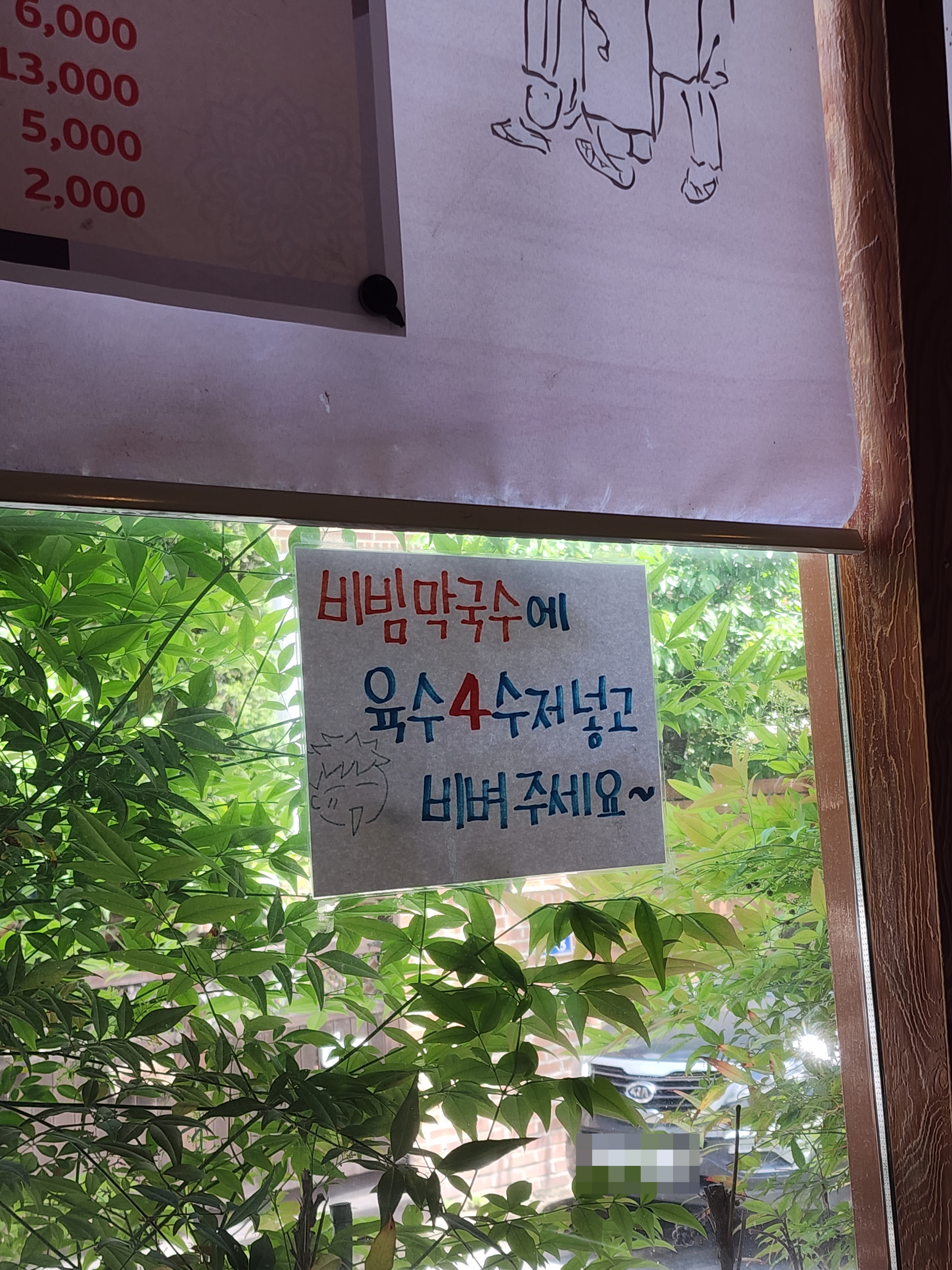 비빔막국수를 드실 때 육수 4 수저를 넣어서 비벼달라는 문구가 있습니다.