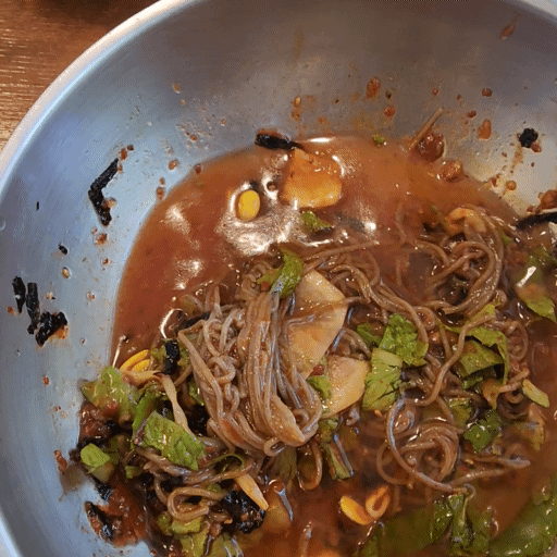 계란의 담백한 느낌이 들 때 후다닥 비빔 막국수도 먹었습니다.