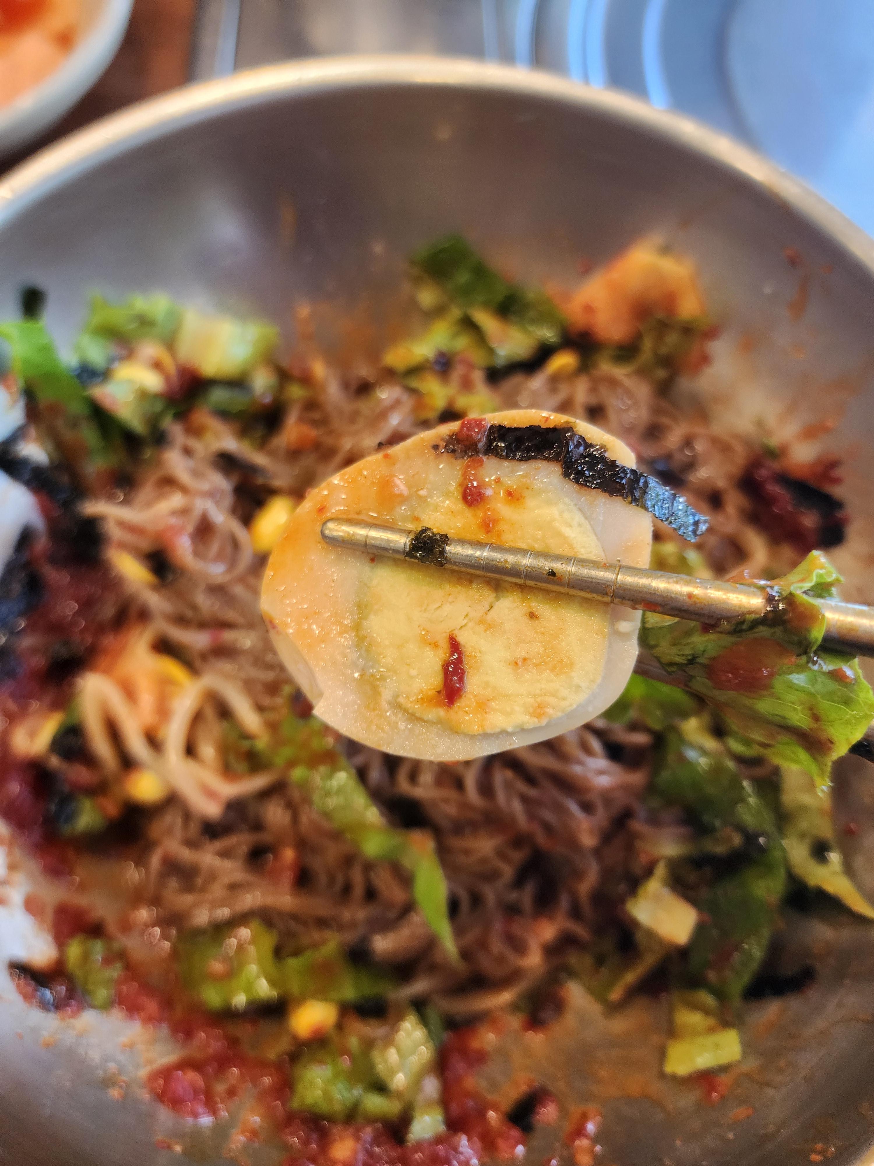 그리고 여기 비빔막국수는 특이하게 계란이 맥반석 계란입니다.