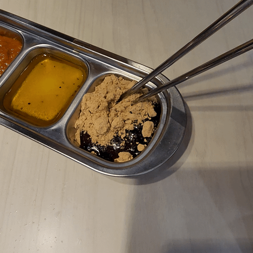 데리야끼와 콩가루를 섞어서 먹으면 맛있다고 해서 바로 담았습니다.