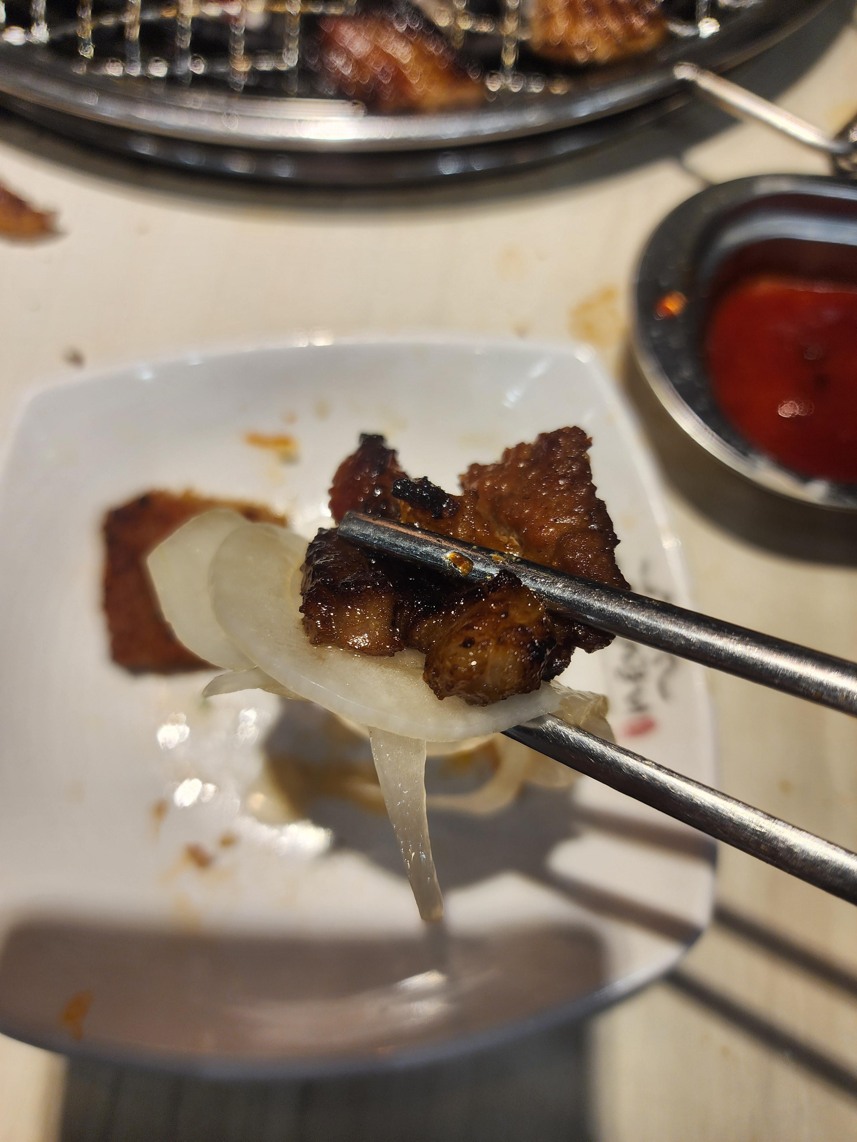 나중에 양념고기를 드실 때는 불판을 바꿔서 먹어야 할 것 같습니다.