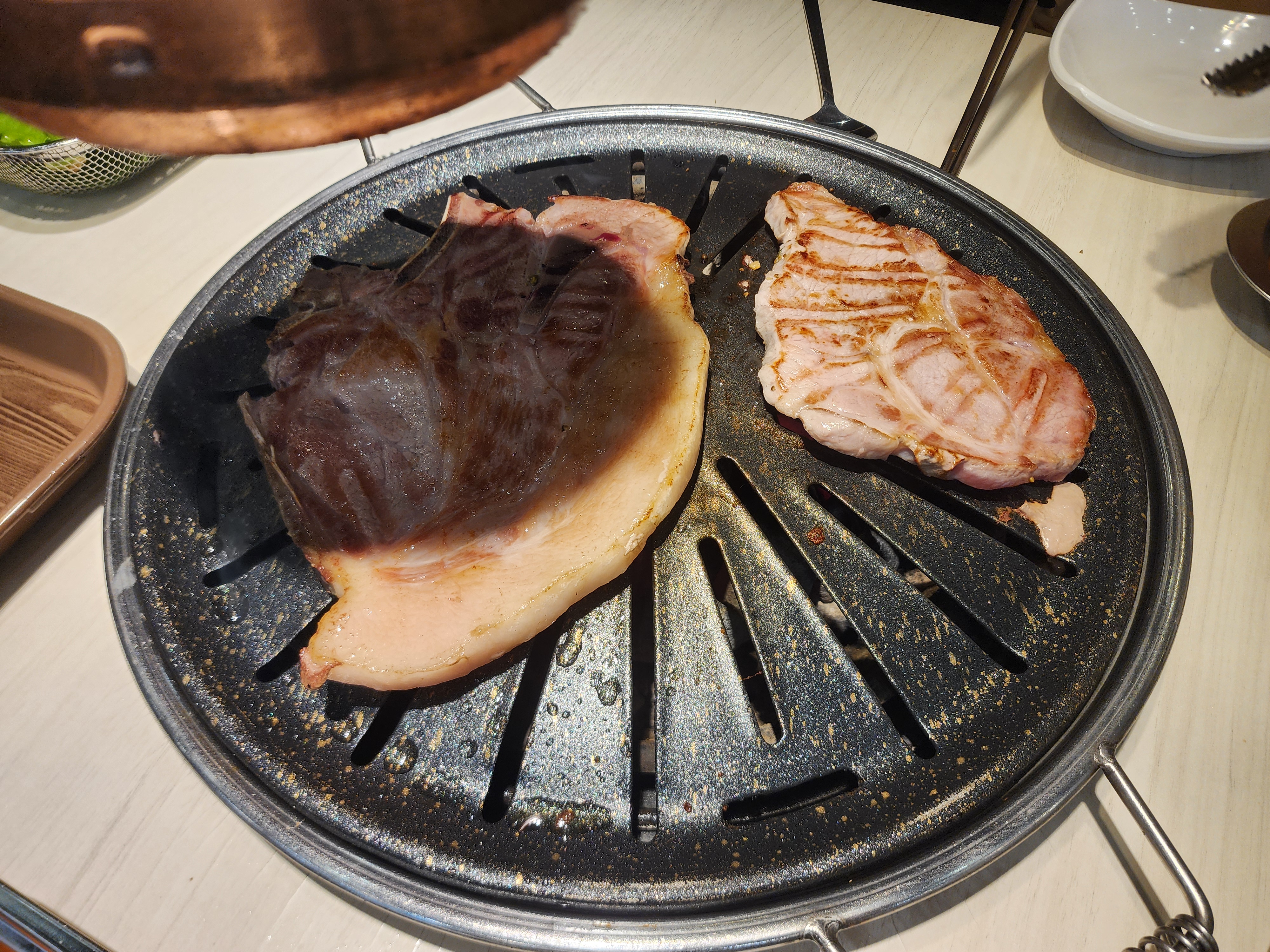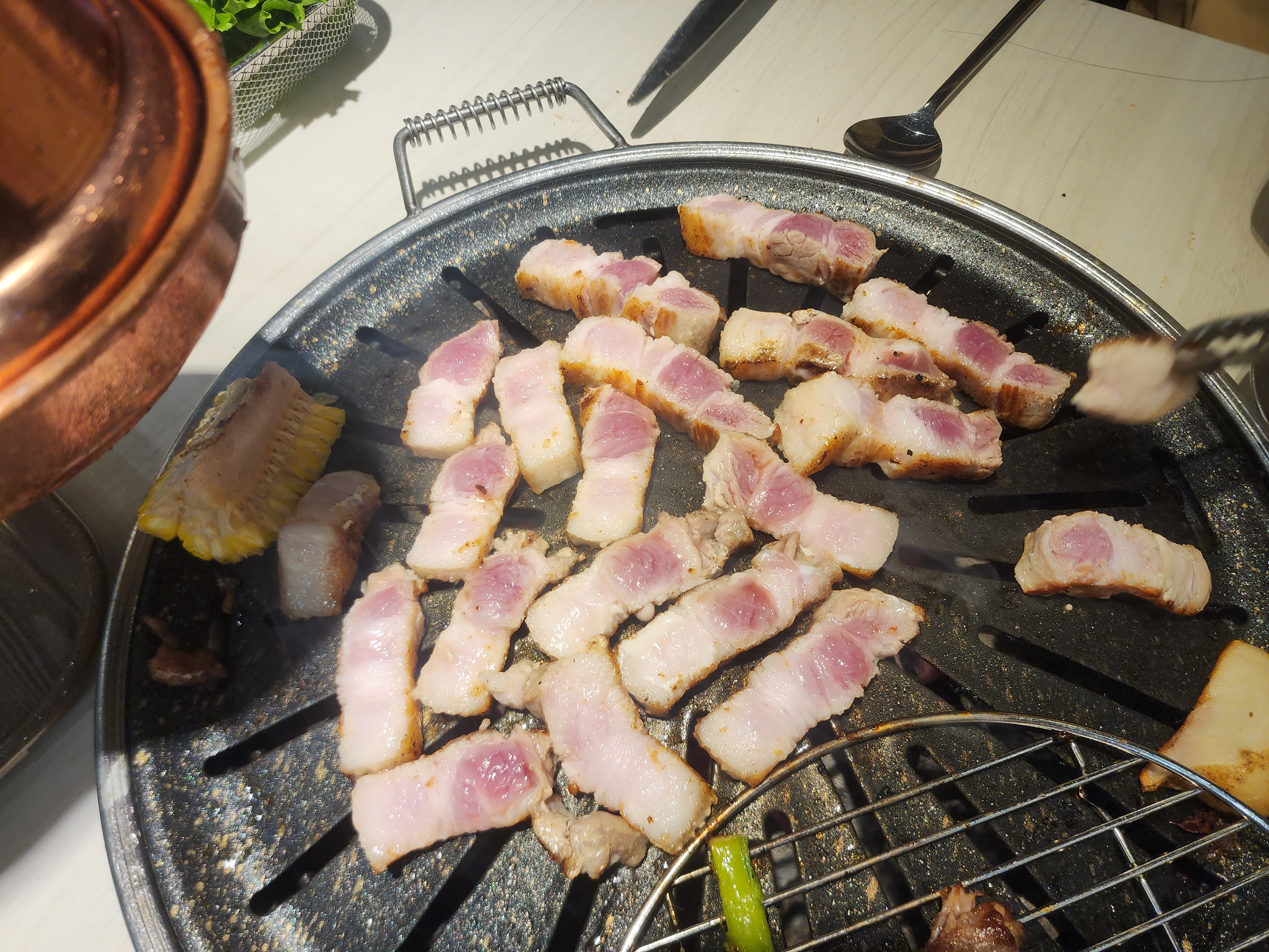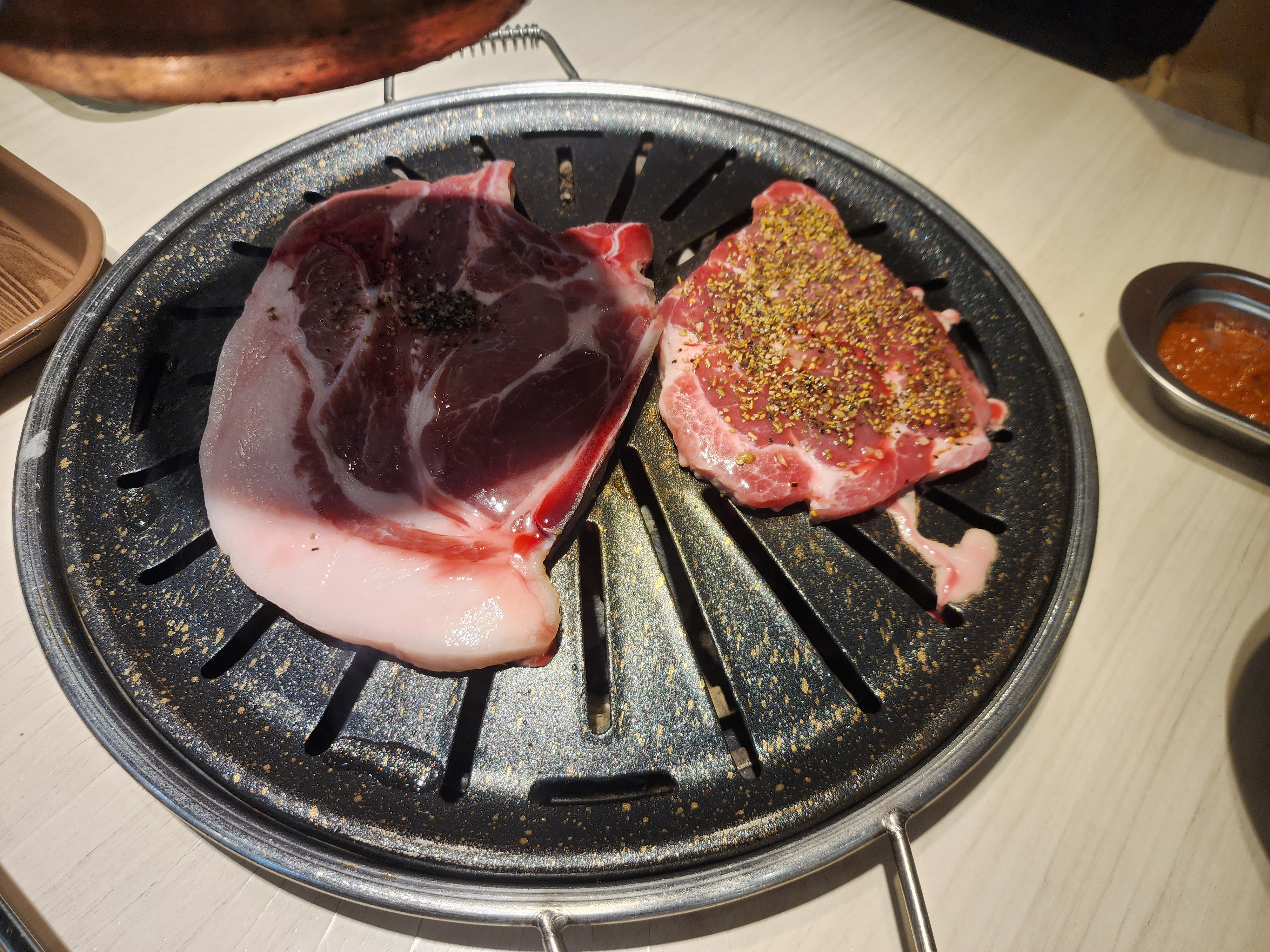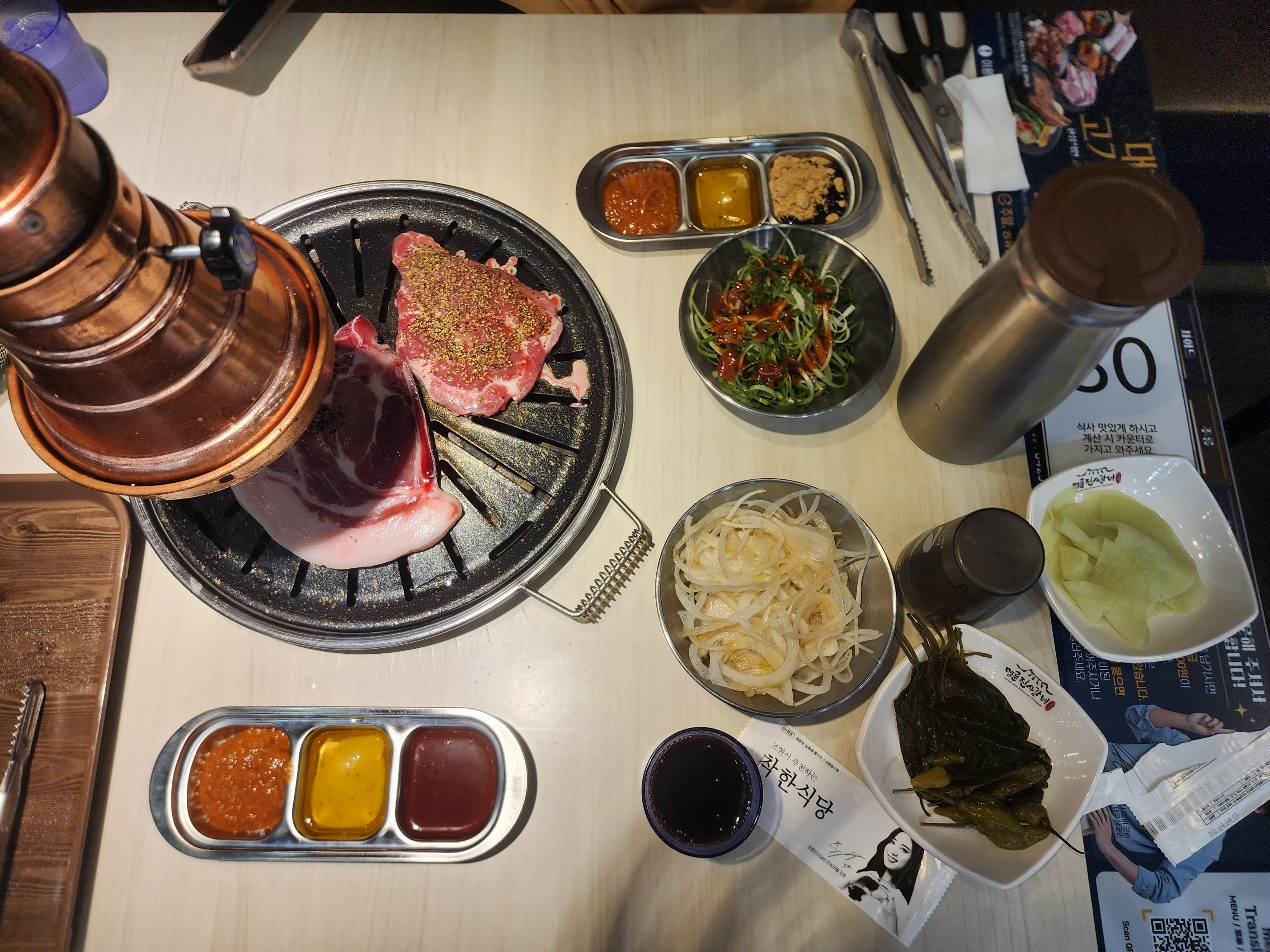 저희는 생고기를 먼저 먹는다고 하니 사진과 같은 불판을 놔주셨습니다.