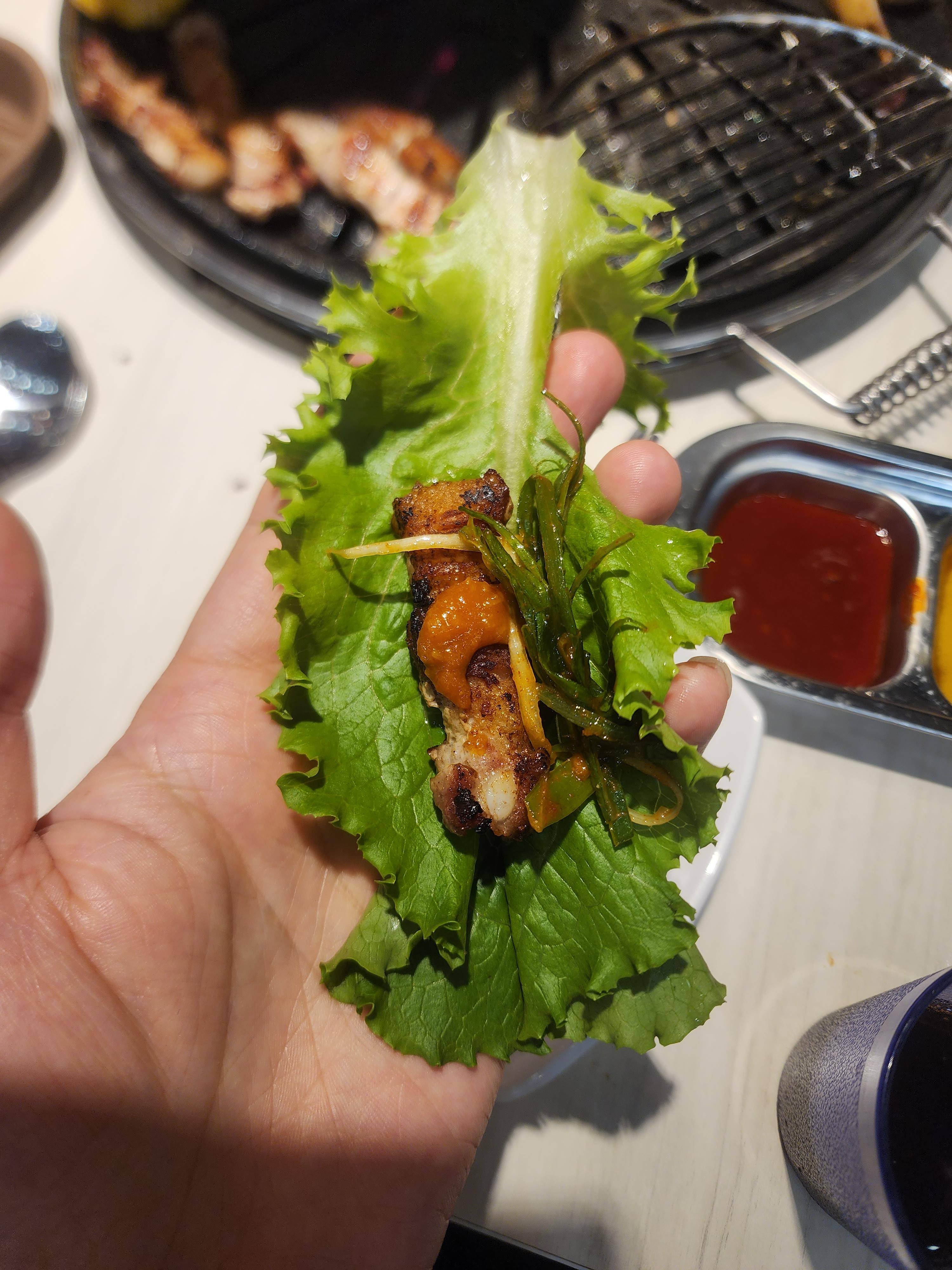 돼지갈비만 먹으면 그냥 그렇지만 야채와 같이 먹으니까 맛있습니다~~