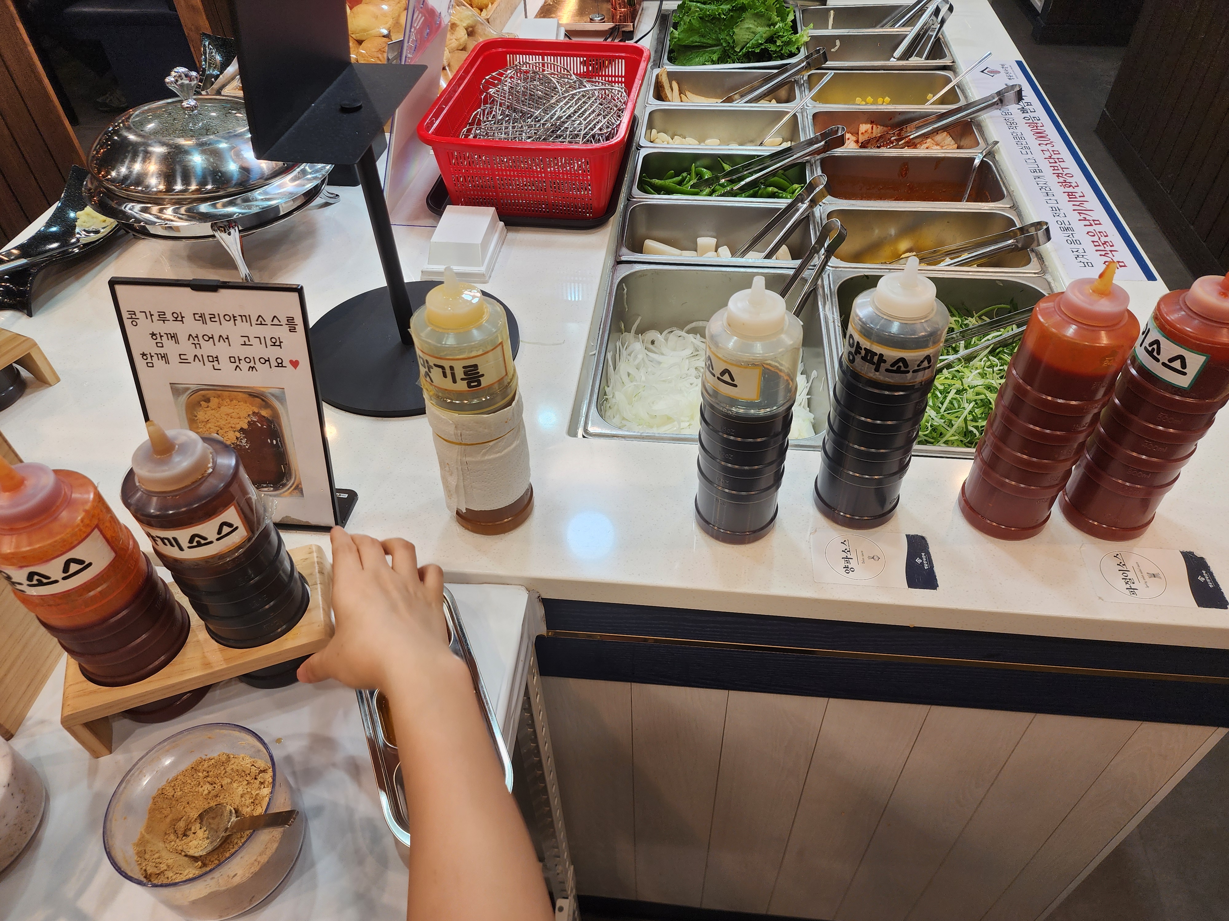 고기가 먼저 이기 때문에 셀프바는 대충 후다닥 담아서 세팅했네요.