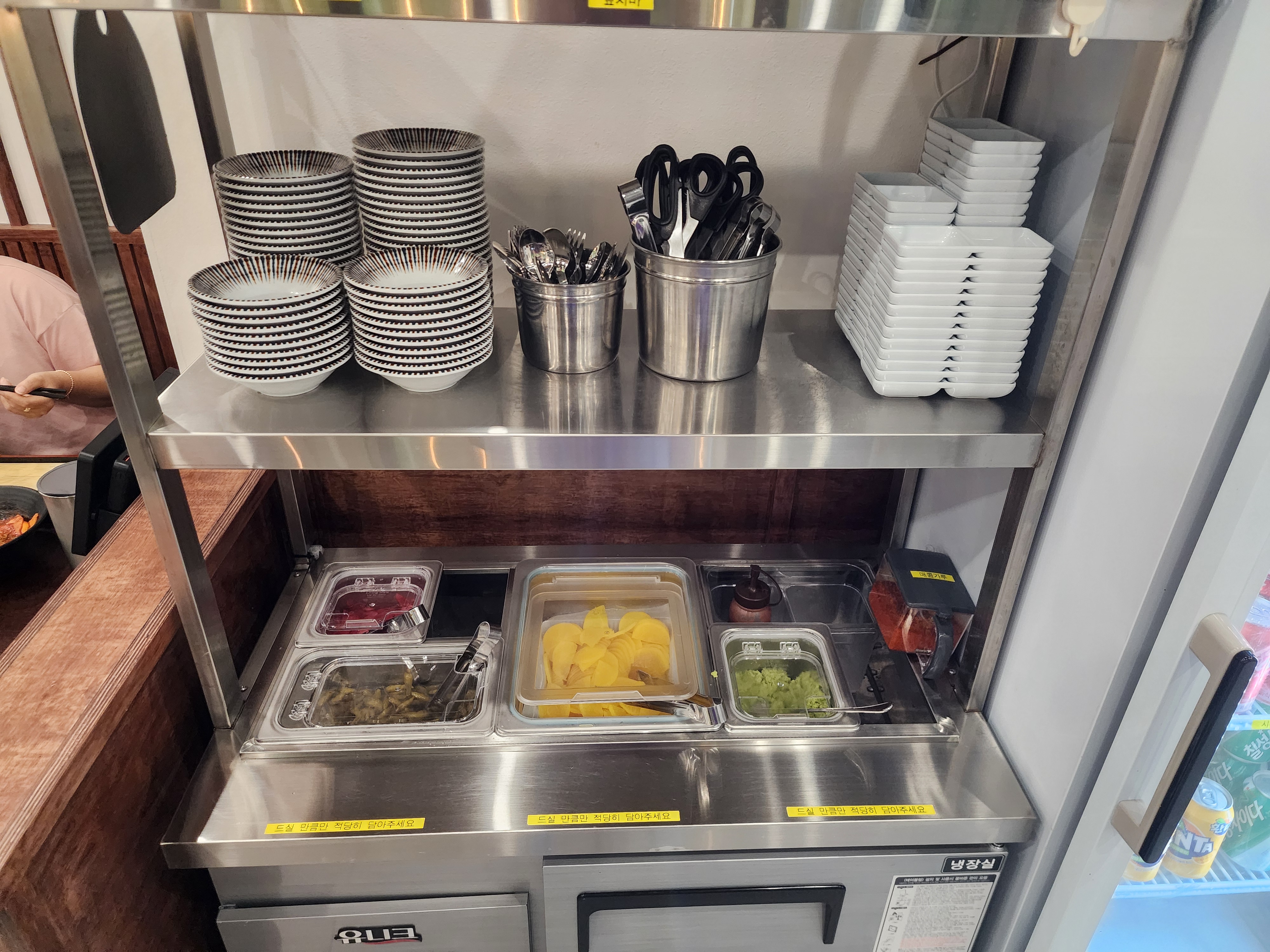 부족하신 반찬과 고추냉이 등 여기서 담아 가시면 됩니다!!