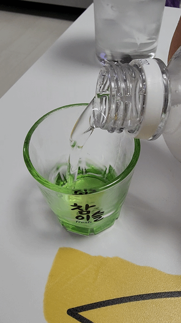 이제 흘리지 않게 조심조심 소주와 토닉워터를 섞어주시면 됩니다.