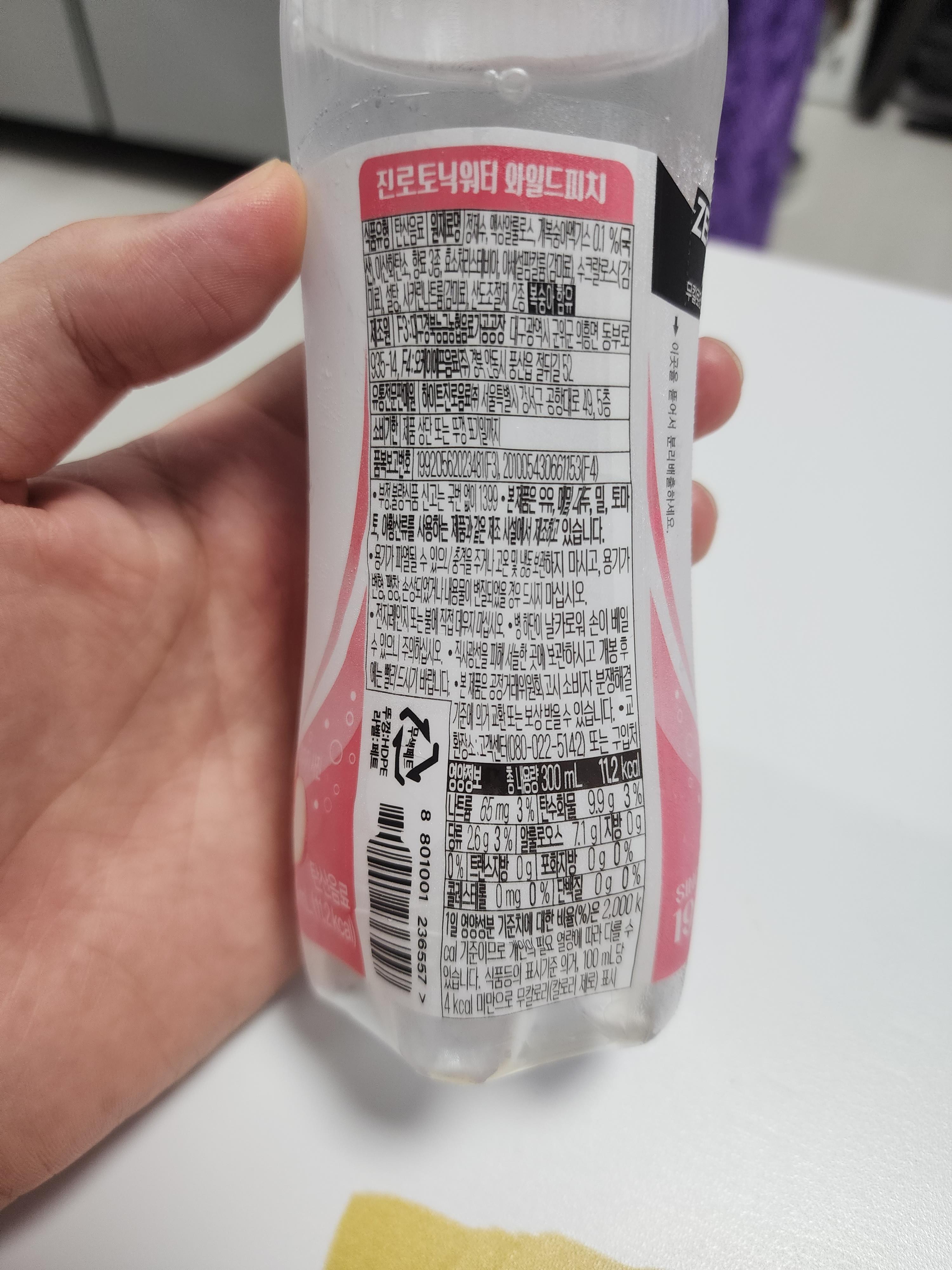 오늘은 진로토닉워터 와일드 피치를 마셨는데요.