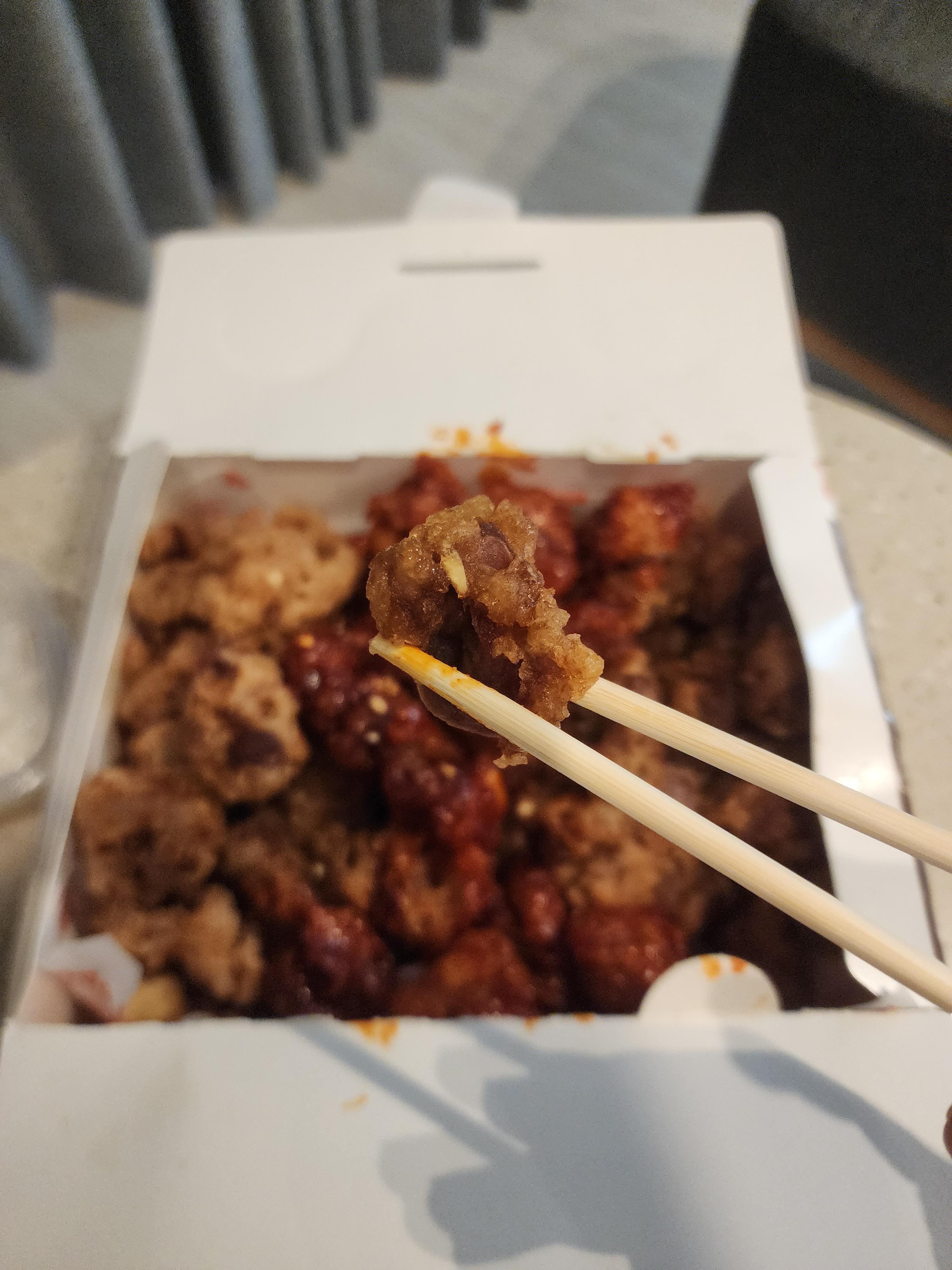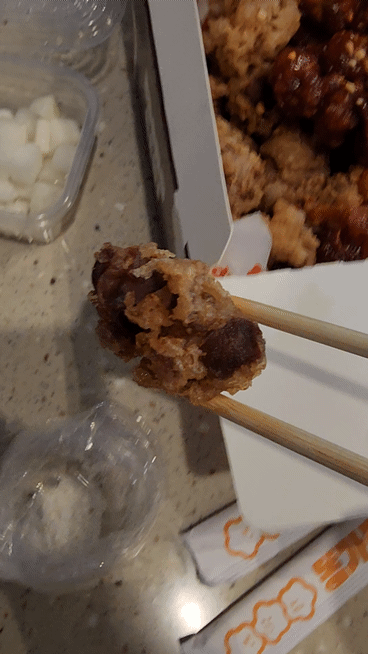 양념치킨 맛에 닭똥집 식감이 나는 맛입니다.