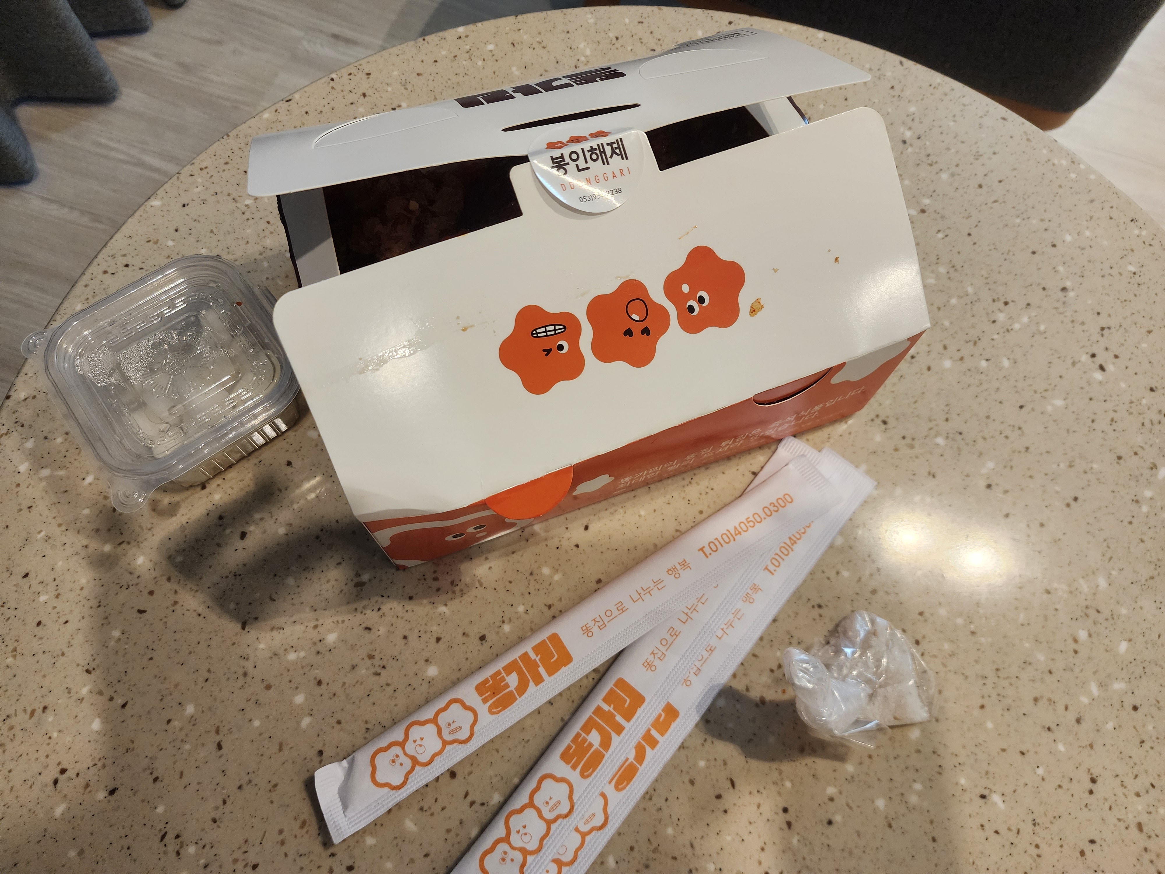치킨무와 젓가락을 주시고 포장에 귀여운 스티커 붙여 있습니다.