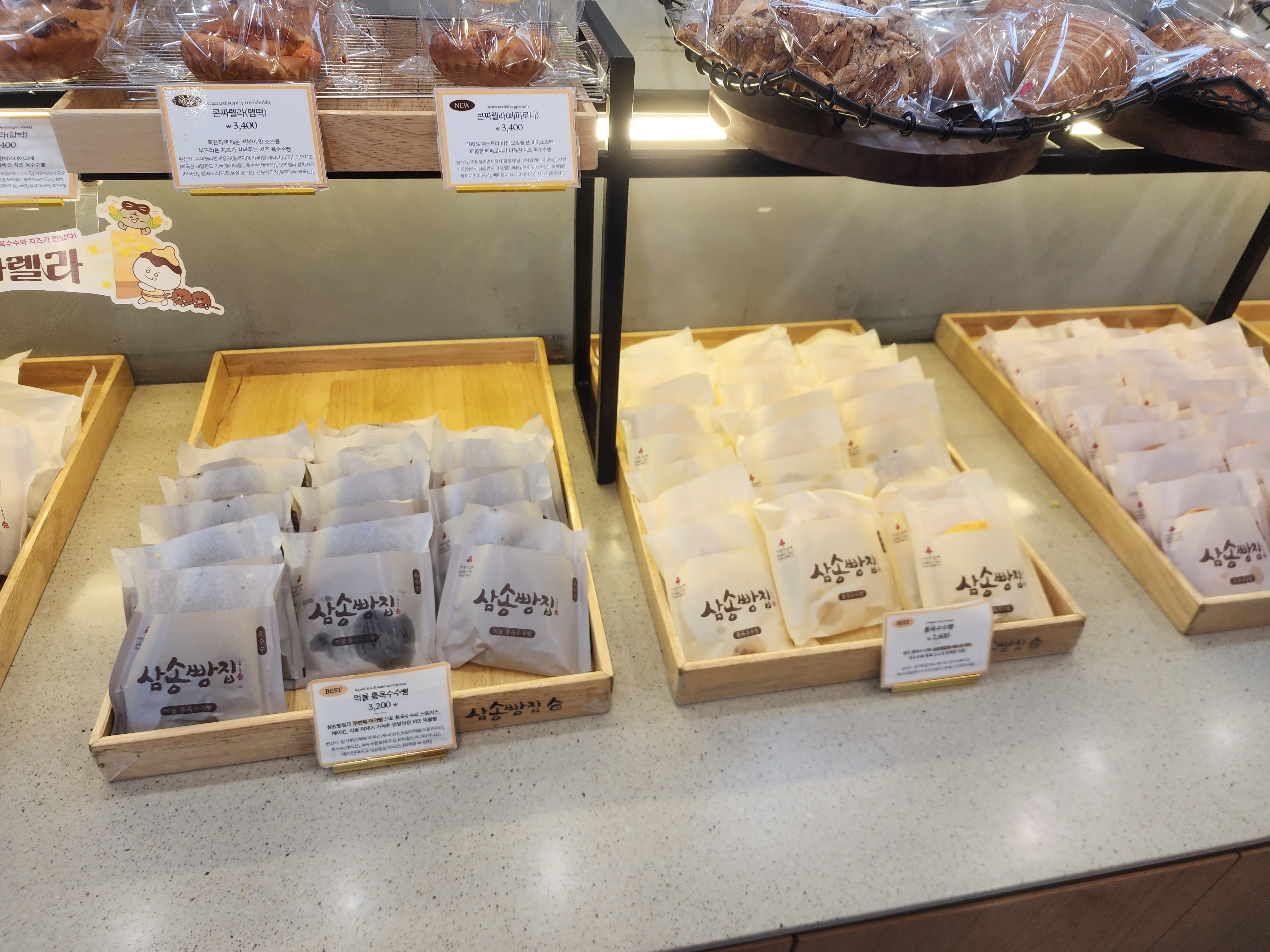 저의 목표는 오직 통옥수수빵이었기 때문에 통옥수수빵과 먹물 통옥수수빵만 구매했습니다.