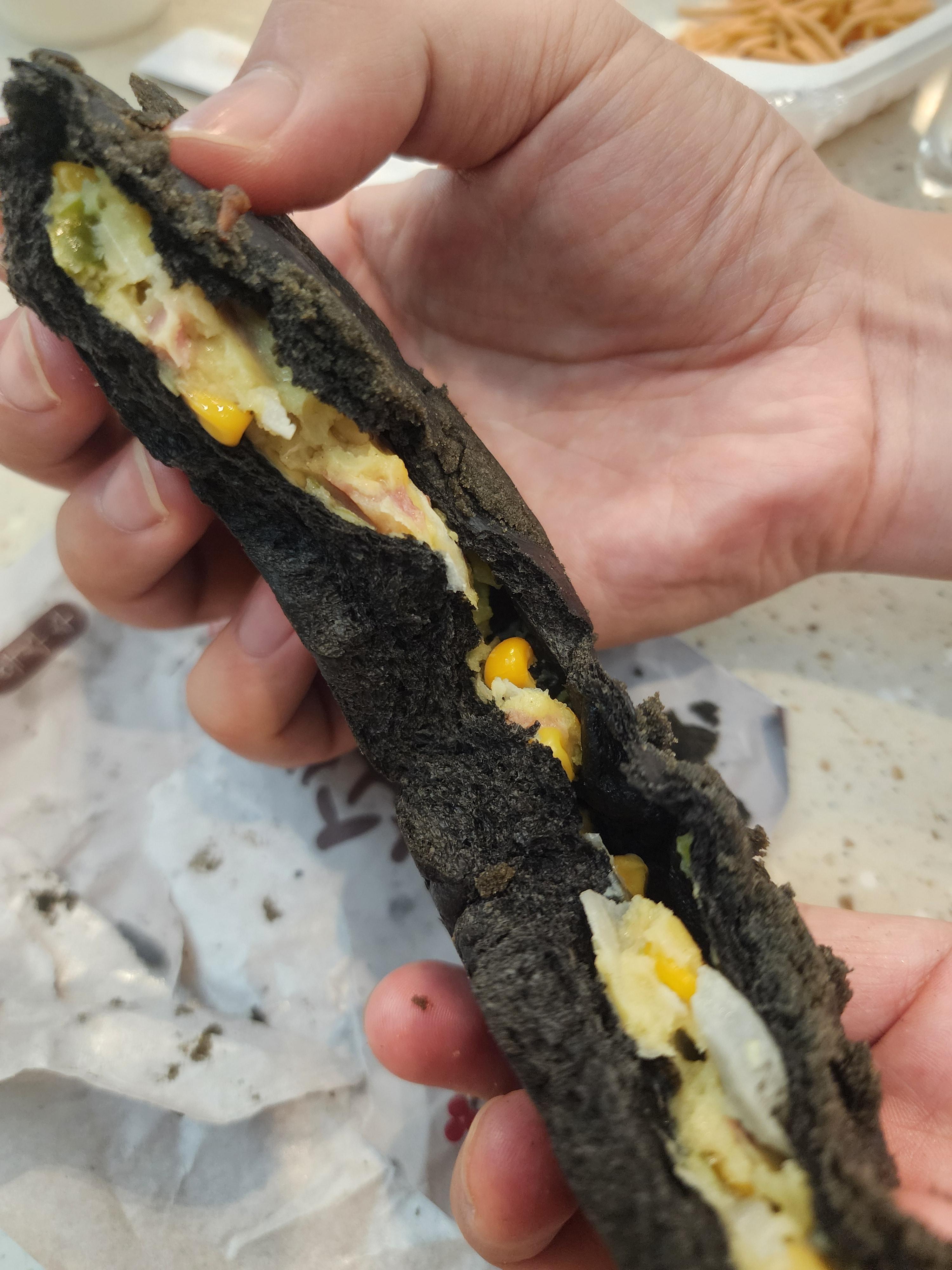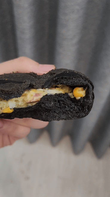 먹물 통옥수수빵은 약간 실망스러운 느낌이 듭니다.