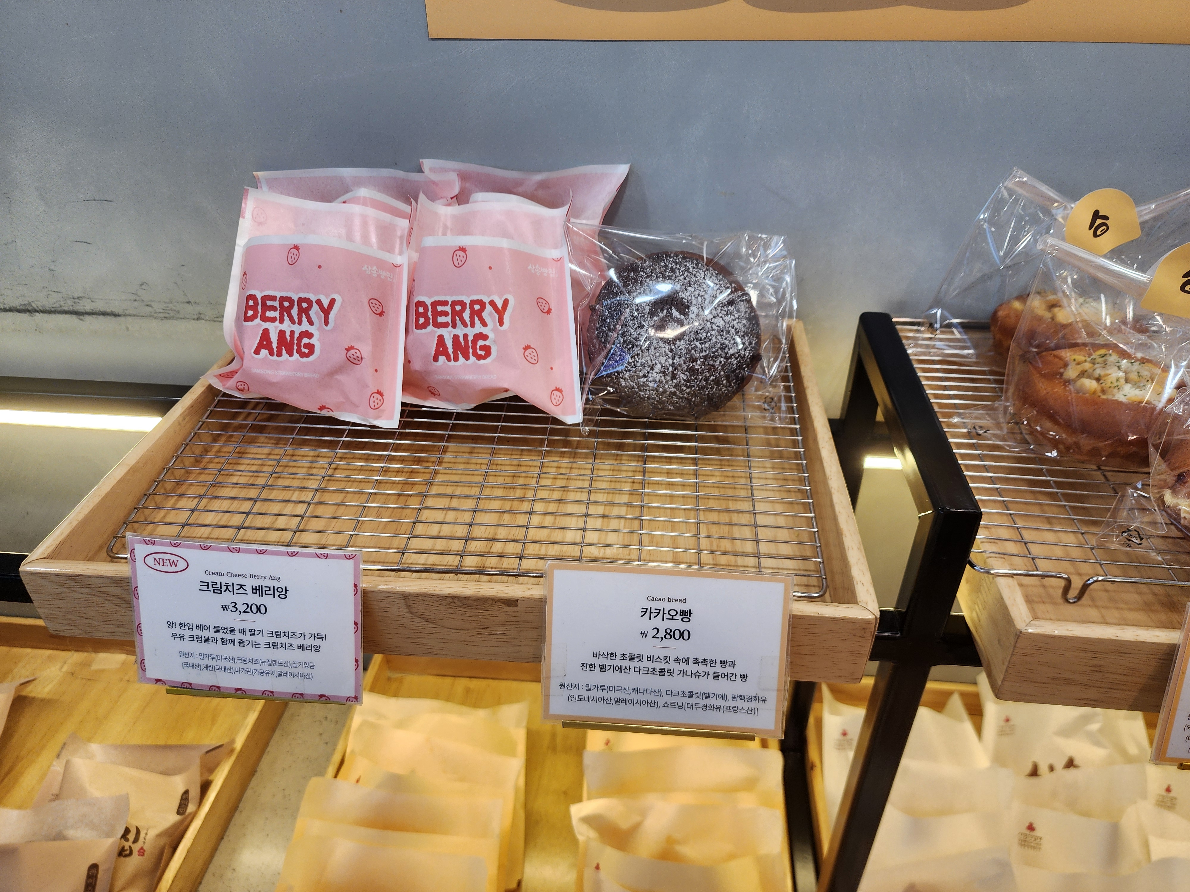 카카오빵은 하나 남은 거 후다닥 구매했고 크림치즈 베리앙은 NEW 마크가 붙어 있어서 구매했습니다.